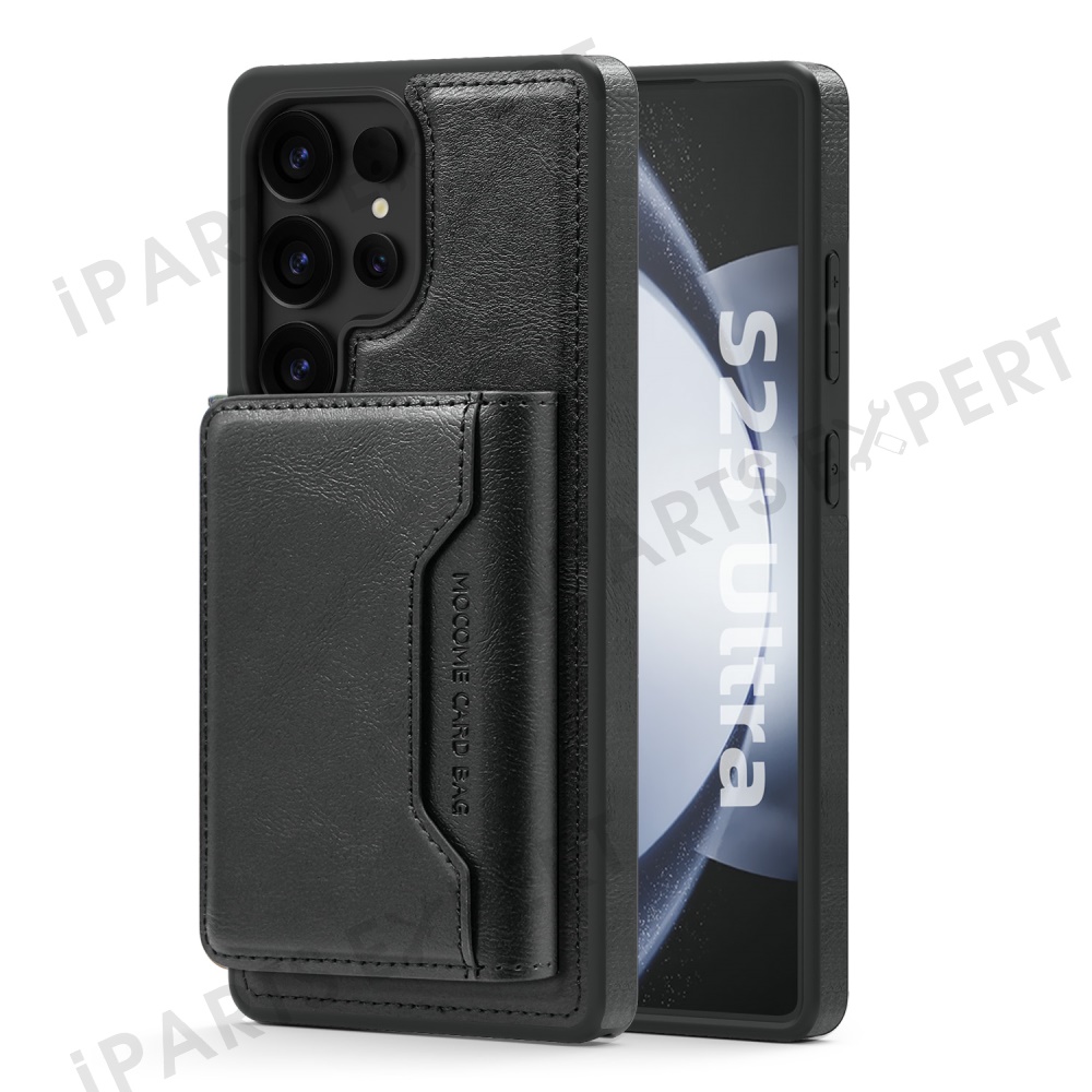 For Samsung Galaxy S25 Ultra Magnetic Case Leather Back Phone Cover with Detachable Card Bag - Black