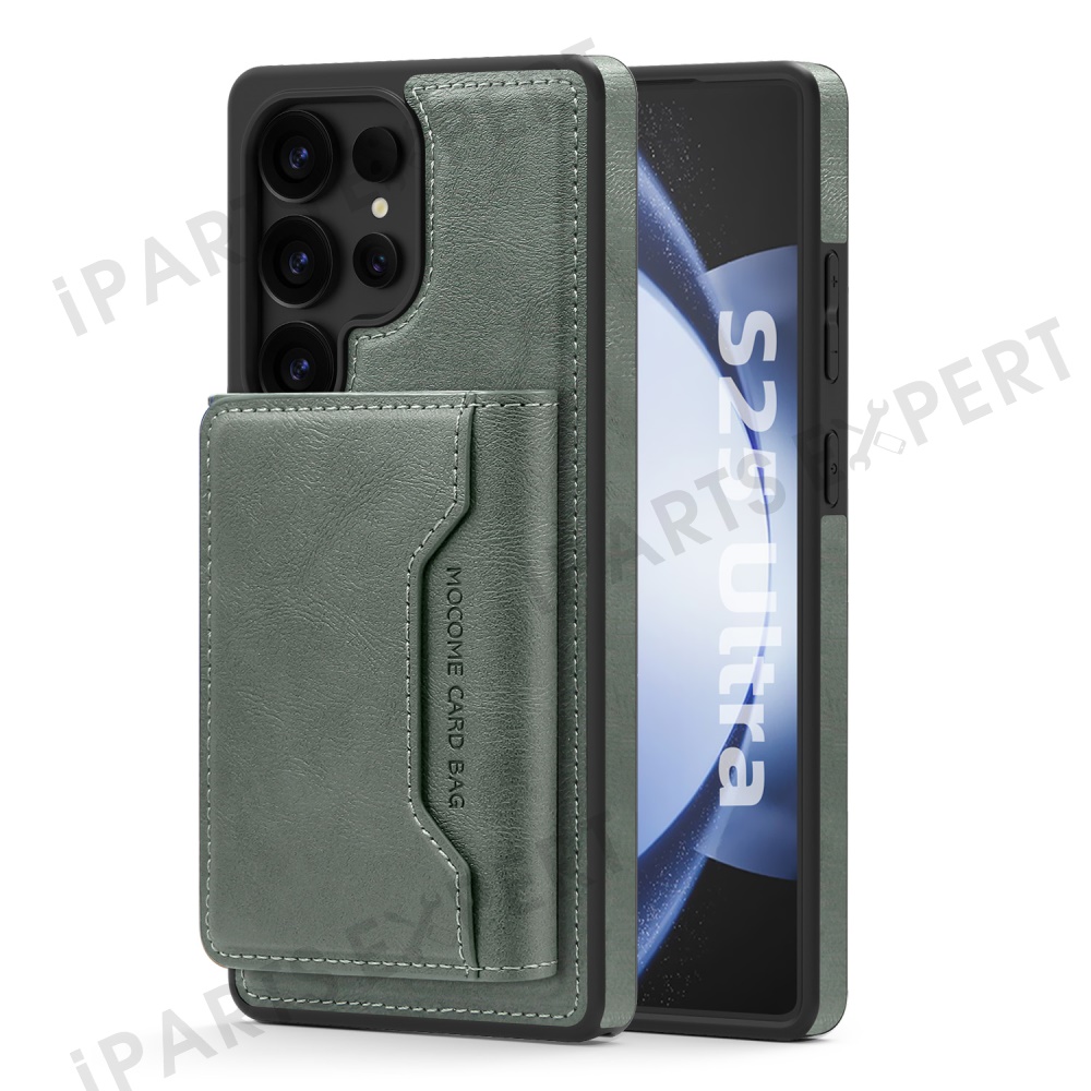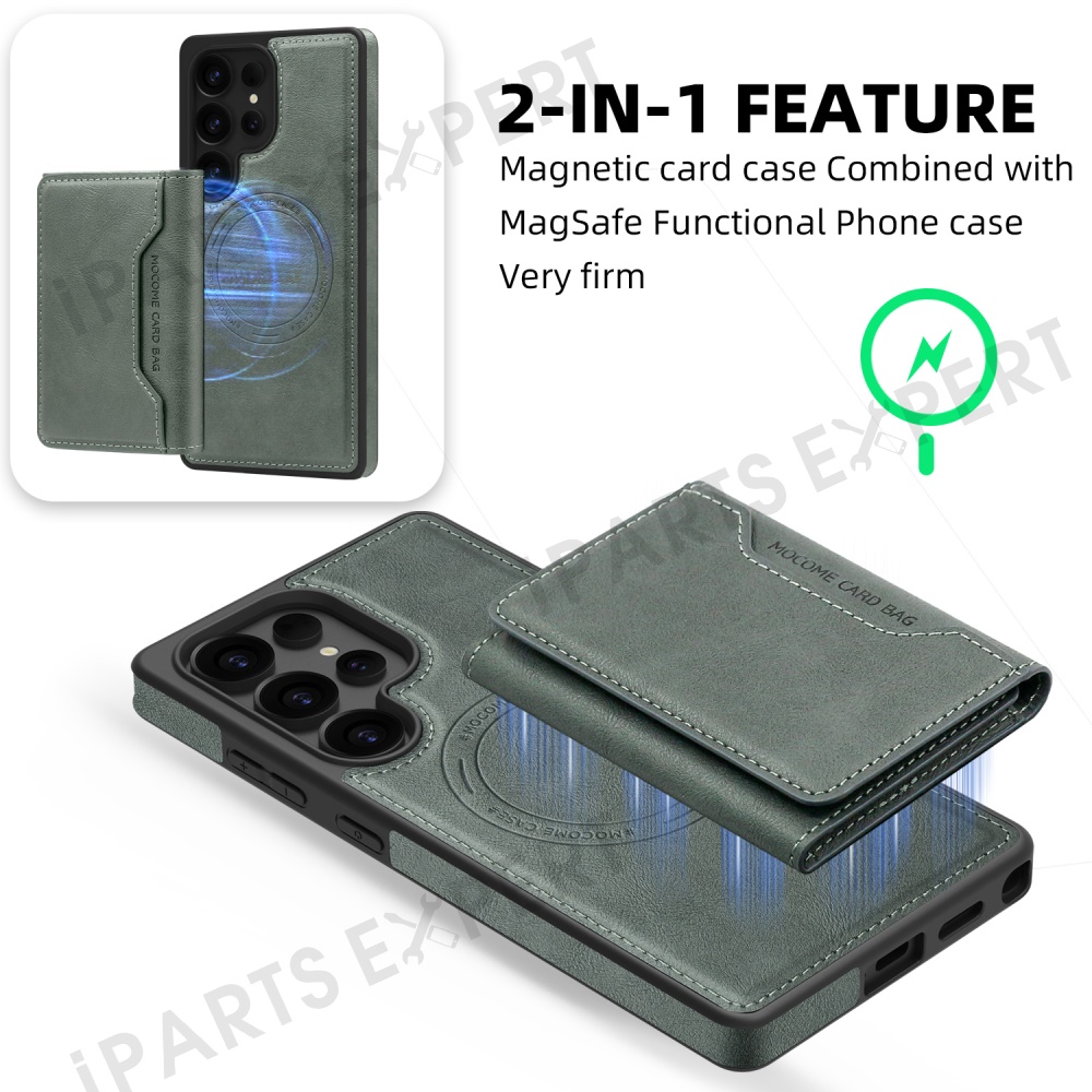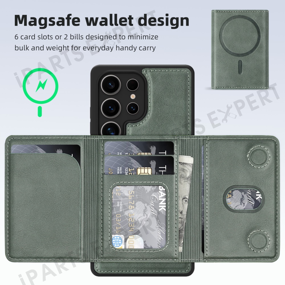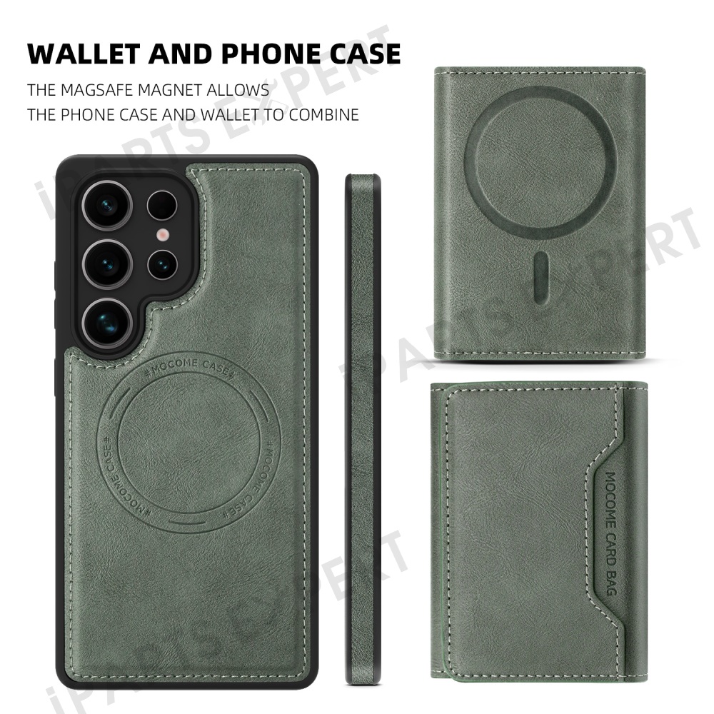For Samsung Galaxy S25 Ultra Magnetic Case Leather Back Phone Cover with Detachable Card Bag - Blackish Green