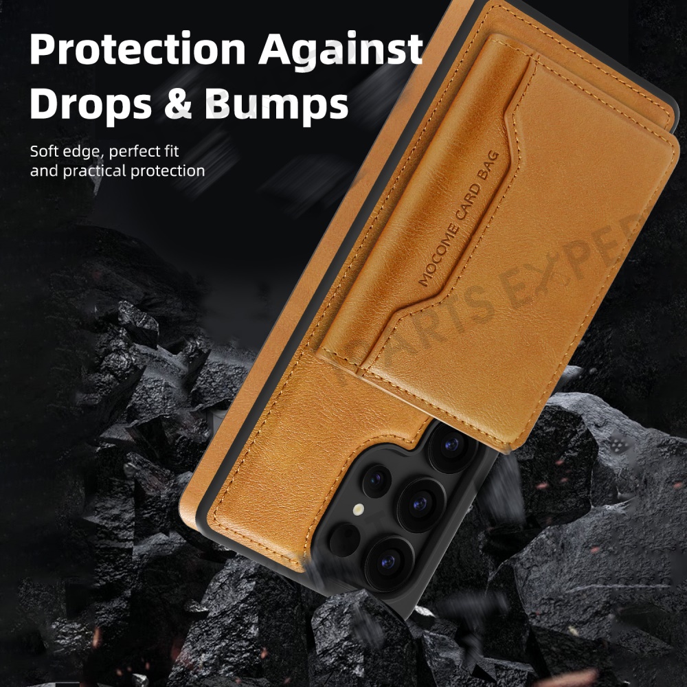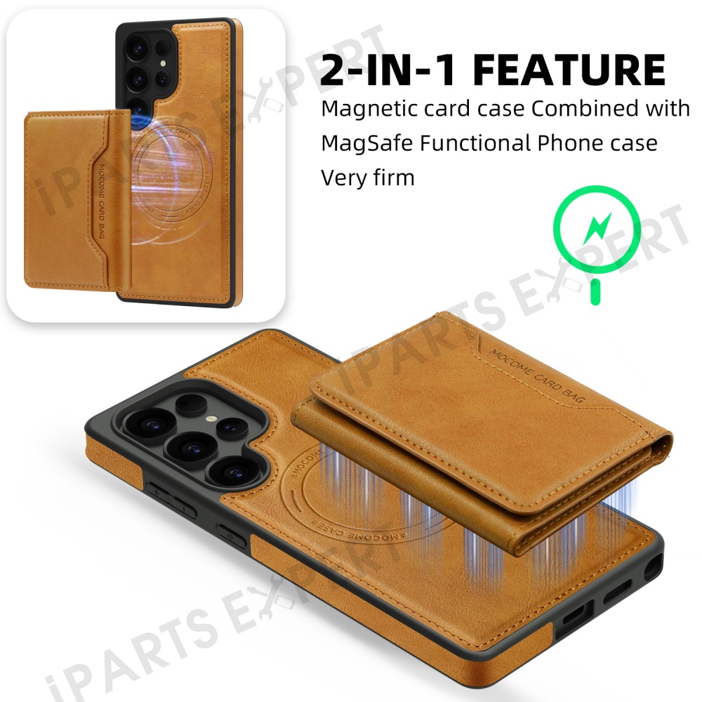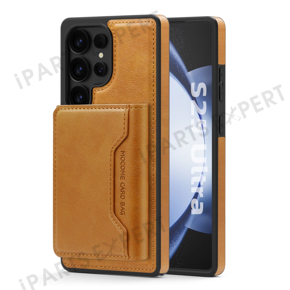 For Samsung Galaxy S25 Ultra Magnetic Case Leather Back Phone Cover with Detachable Card Bag - Brown