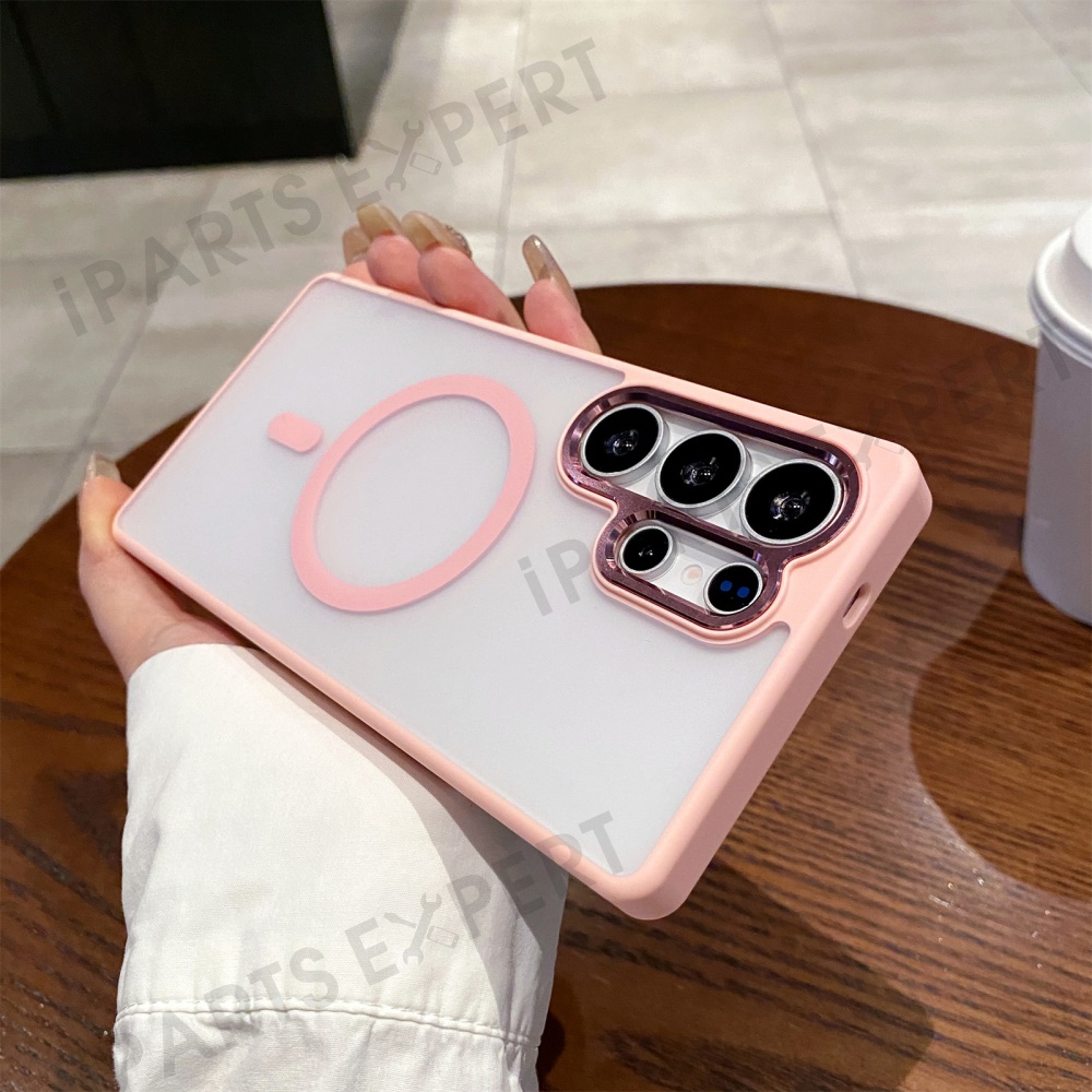 For Samsung Galaxy S25 Ultra Magnetic Case Skin Feel Hybrid Phone Back Cover - Pink