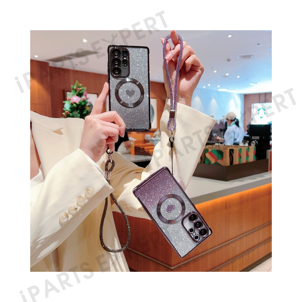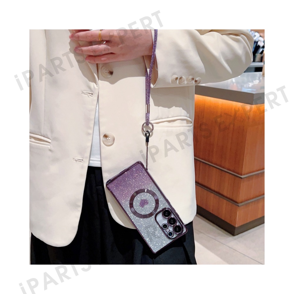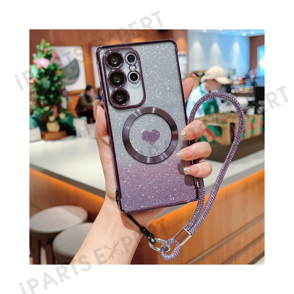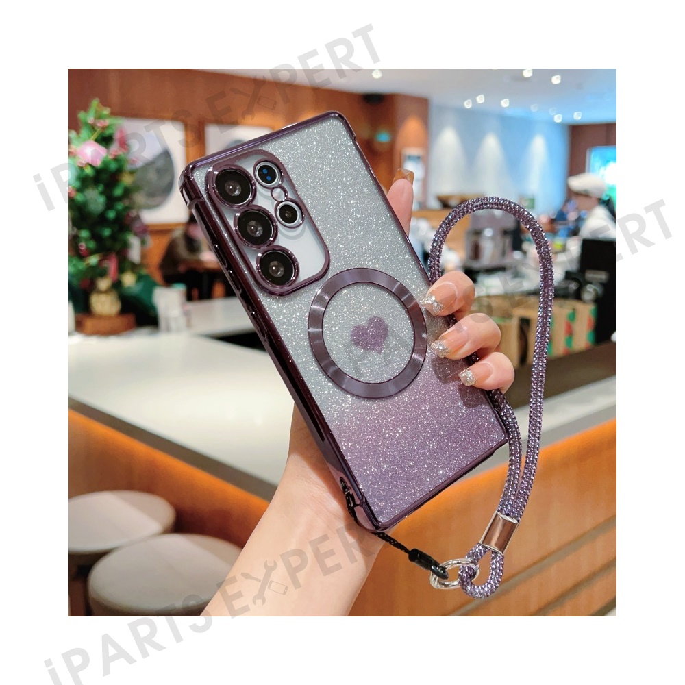 For Samsung Galaxy S25 Ultra Magnetic Case TPU Phone Cover with Strap Heart Gradient Sparkle - Dark Purple