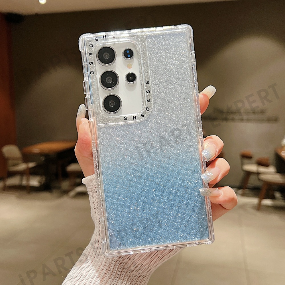 For Samsung Galaxy S25 Ultra Case Glitter Design PC + TPU Shockproof Phone Cover - Blue