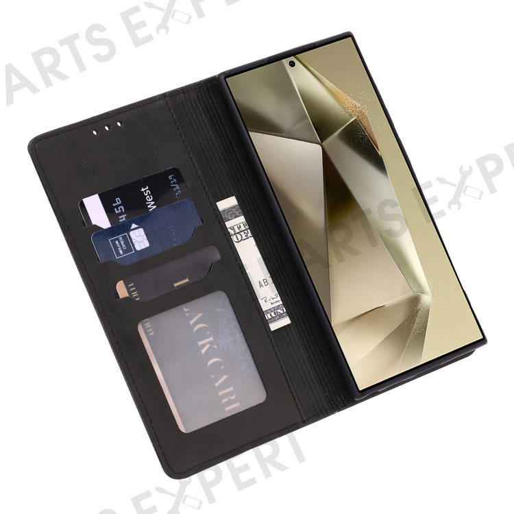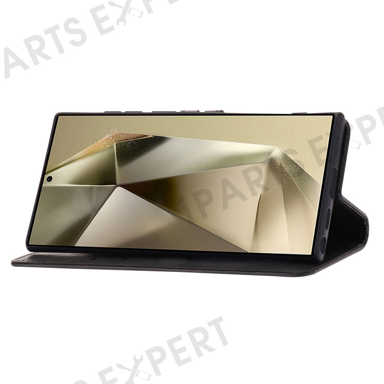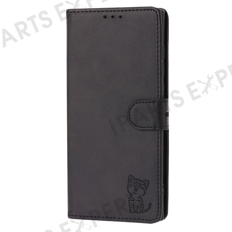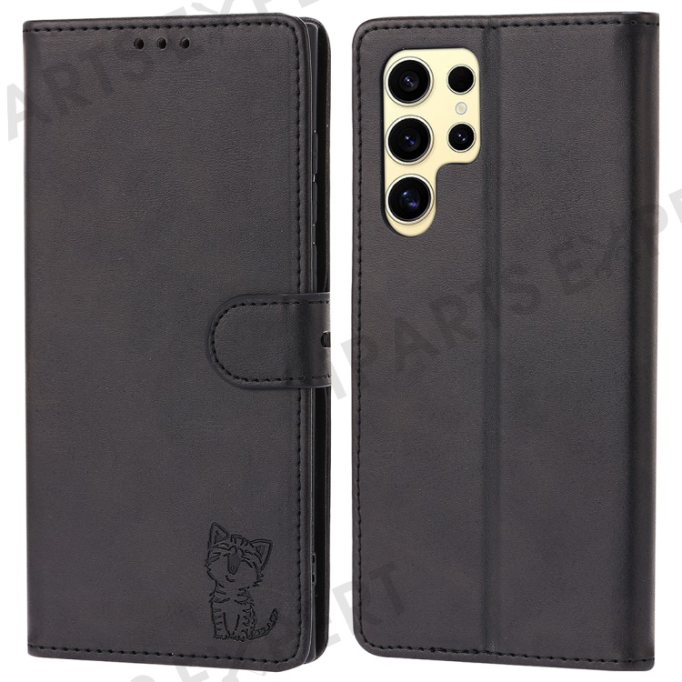 For Samsung Galaxy S25 Ultra Case Happy Cat Pattern Imprinted Leather Wallet Phone Cover - Black