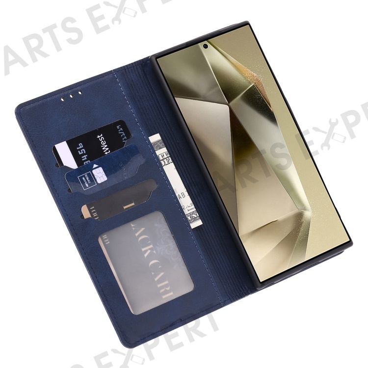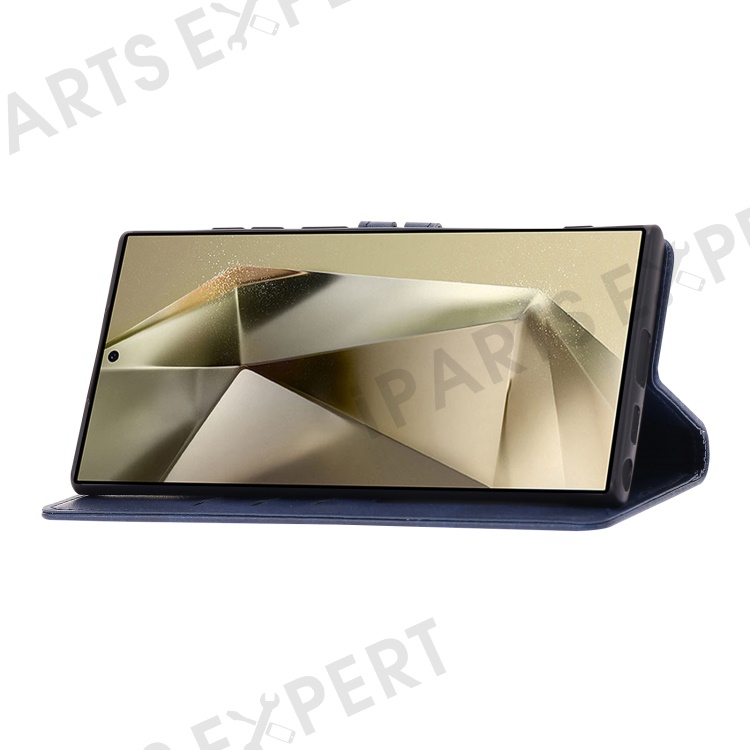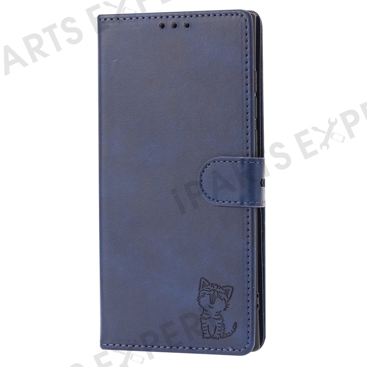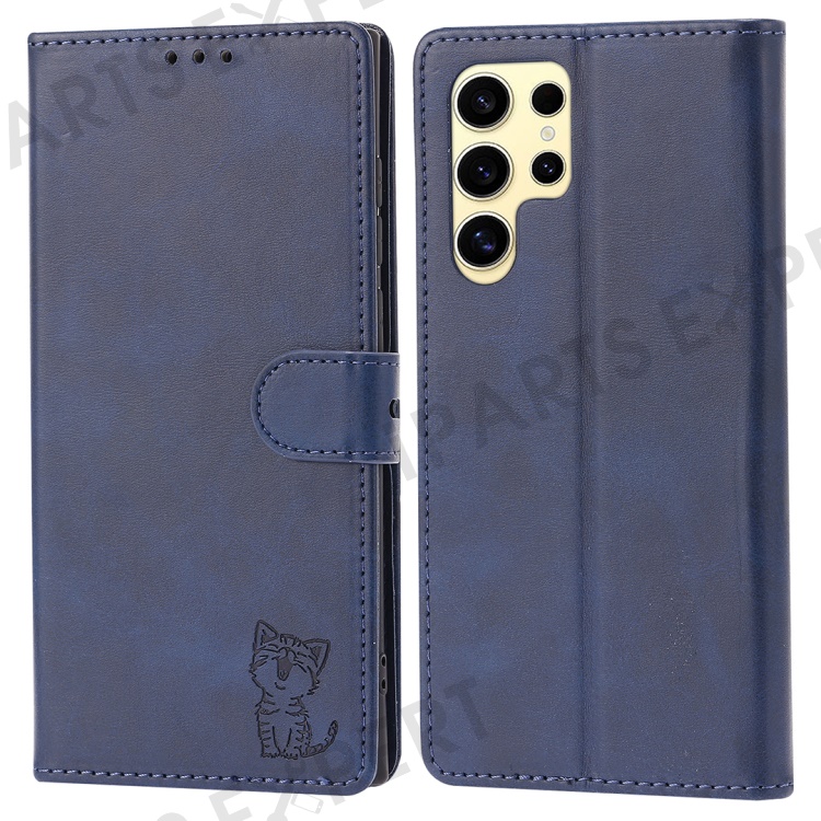 For Samsung Galaxy S25 Ultra Case Happy Cat Pattern Imprinted Leather Wallet Phone Cover - Blue