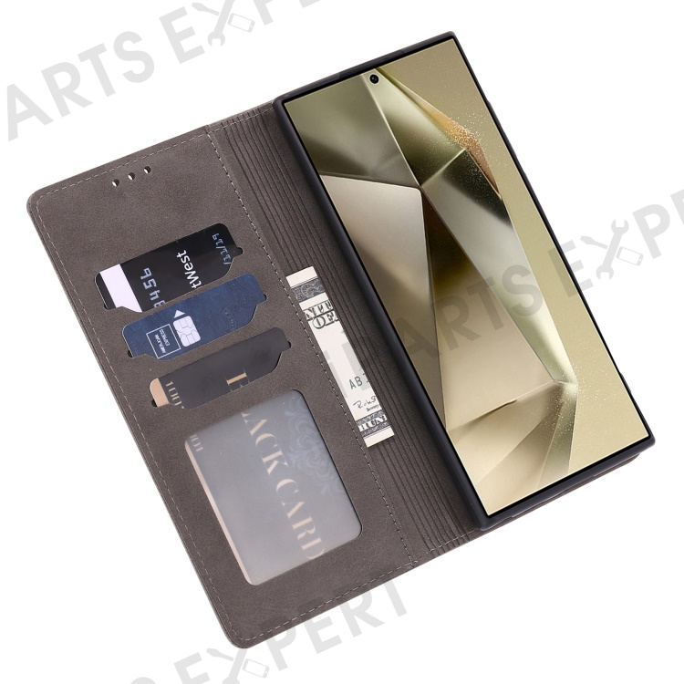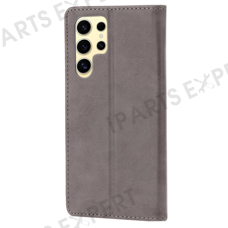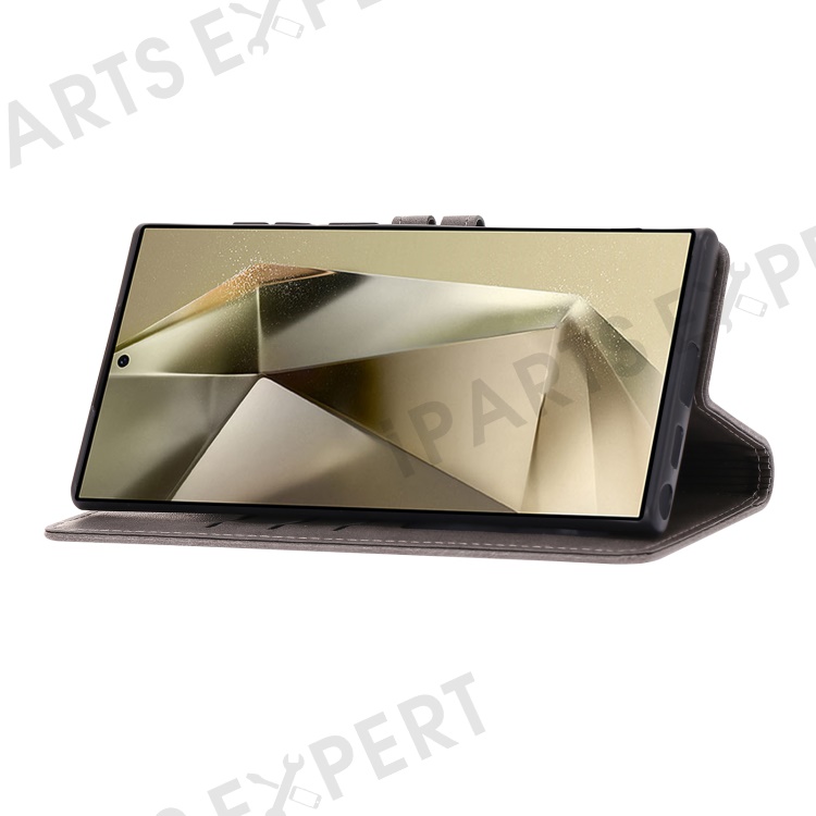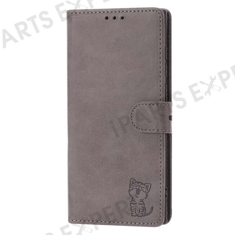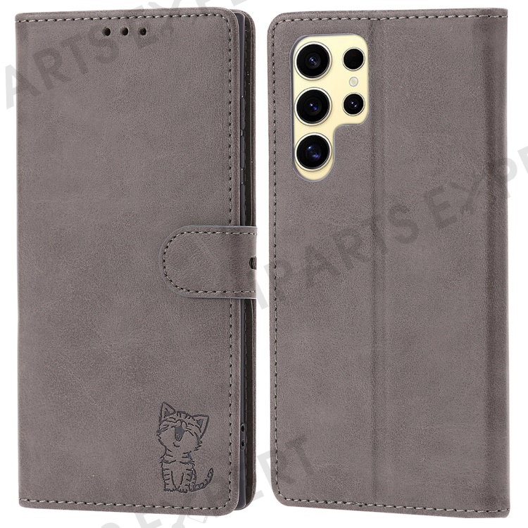 For Samsung Galaxy S25 Ultra Case Happy Cat Pattern Imprinted Leather Wallet Phone Cover - Grey