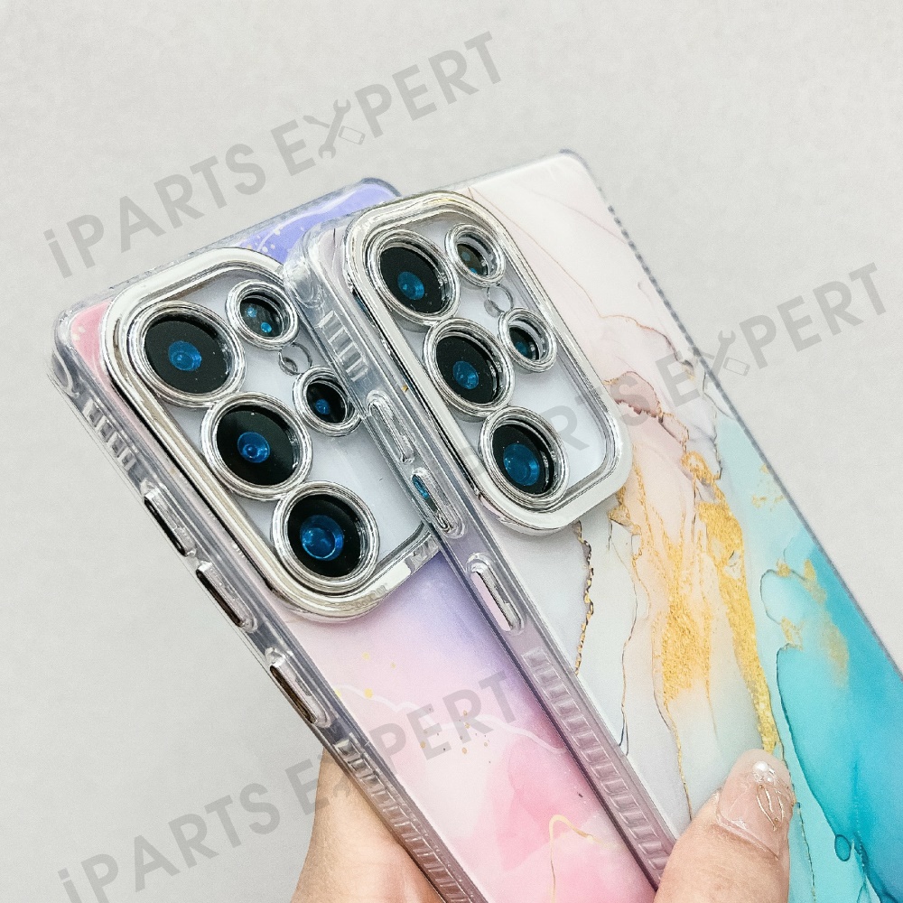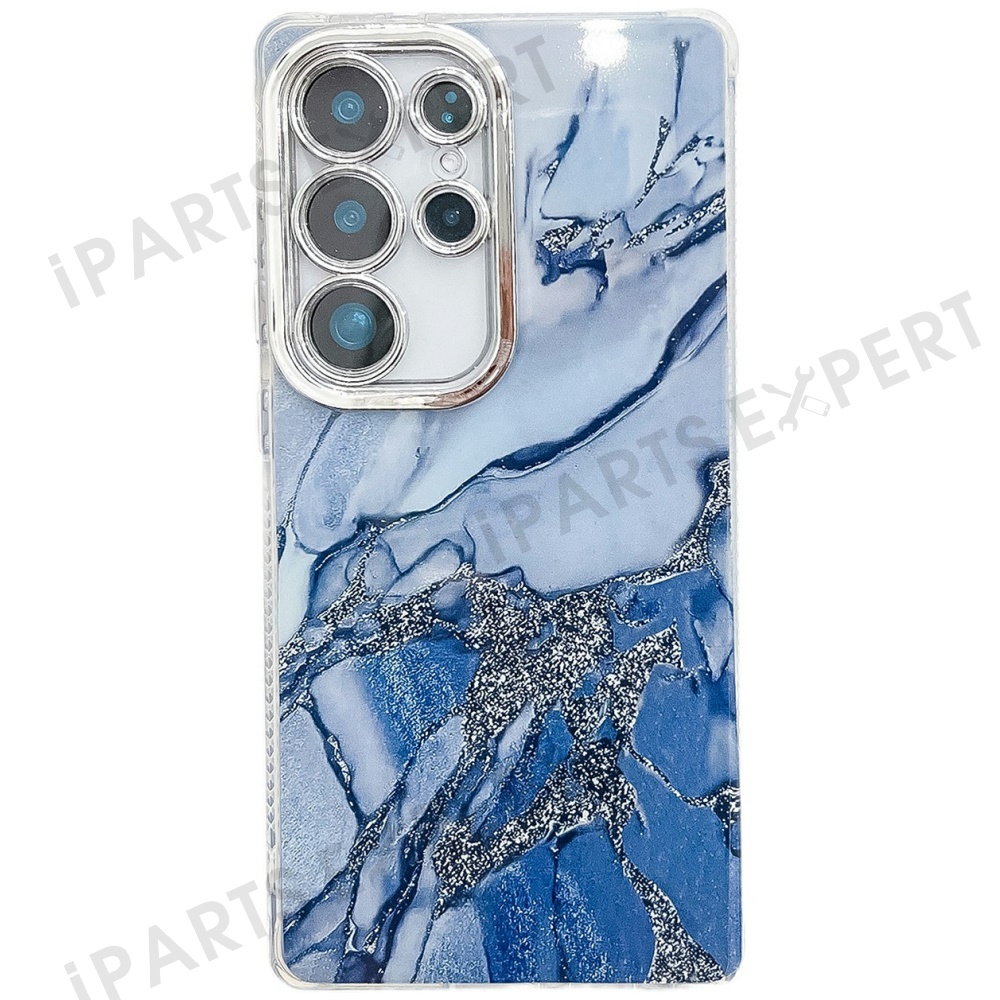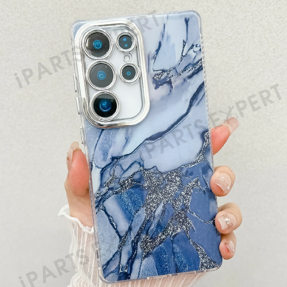 For Samsung Galaxy S25 Ultra Case IMD Marble Pattern Electroplated Protective Phone Cover - M17