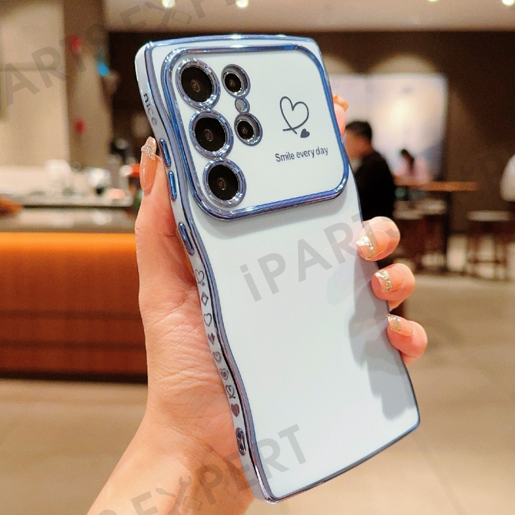For Samsung Galaxy S25 Ultra Case Love Hearts TPU Phone Cover Curly Wave Frame Large Window - Blue