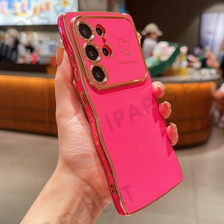For Samsung Galaxy S25 Ultra Case Love Hearts TPU Phone Cover Curly Wave Frame Large Window - Rose