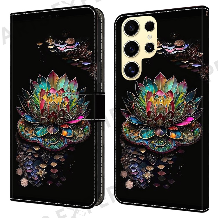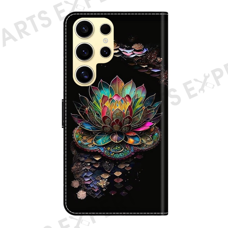 For Samsung Galaxy S25 Ultra Case Pattern Printed Protective Cover TPU+PU Leather Flip Phone Case - Lotus
