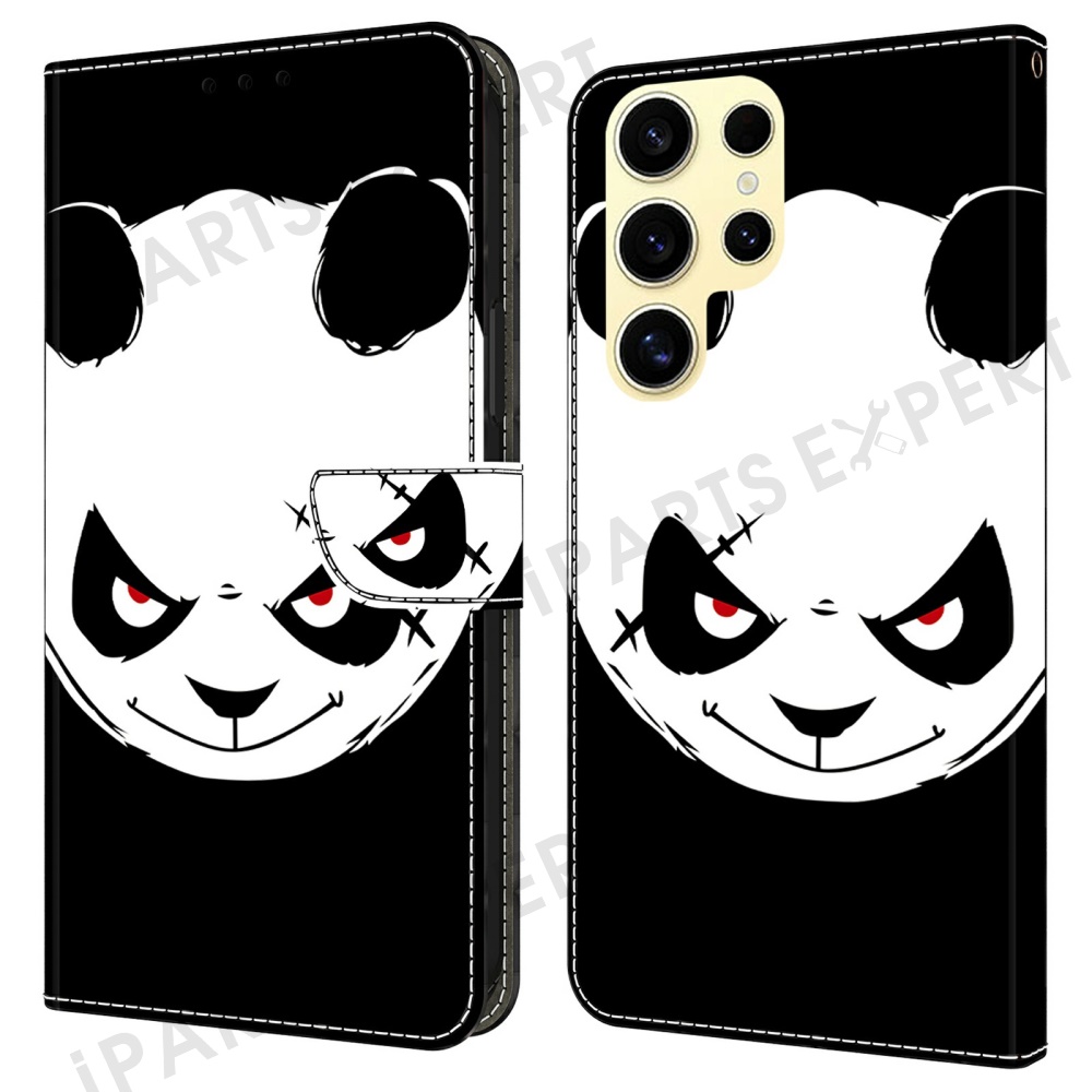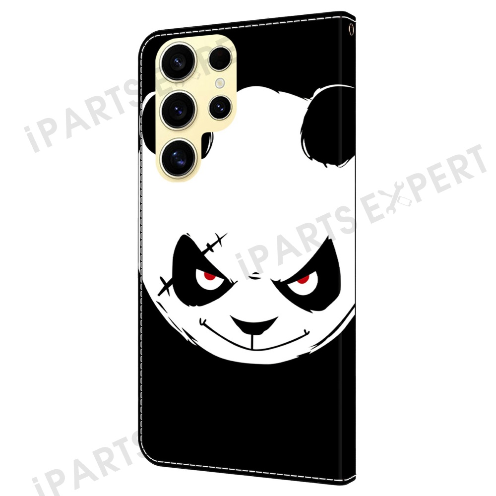 For Samsung Galaxy S25 Ultra Case Pattern Printing Anti-Drop Leather Flip Wallet Phone Cover - Angry Panda