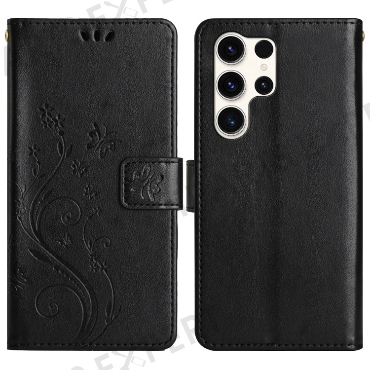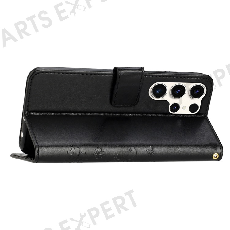 For Samsung Galaxy S25 Ultra Case PU Leather Phone Wallet Cover with Strap - Black