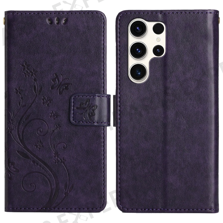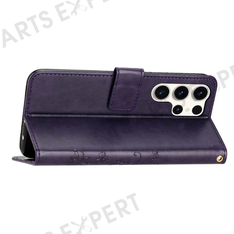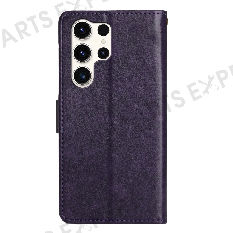 For Samsung Galaxy S25 Ultra Case PU Leather Phone Wallet Cover with Strap - Dark Purple