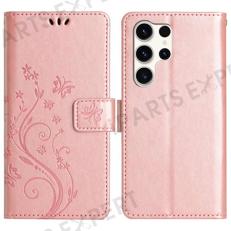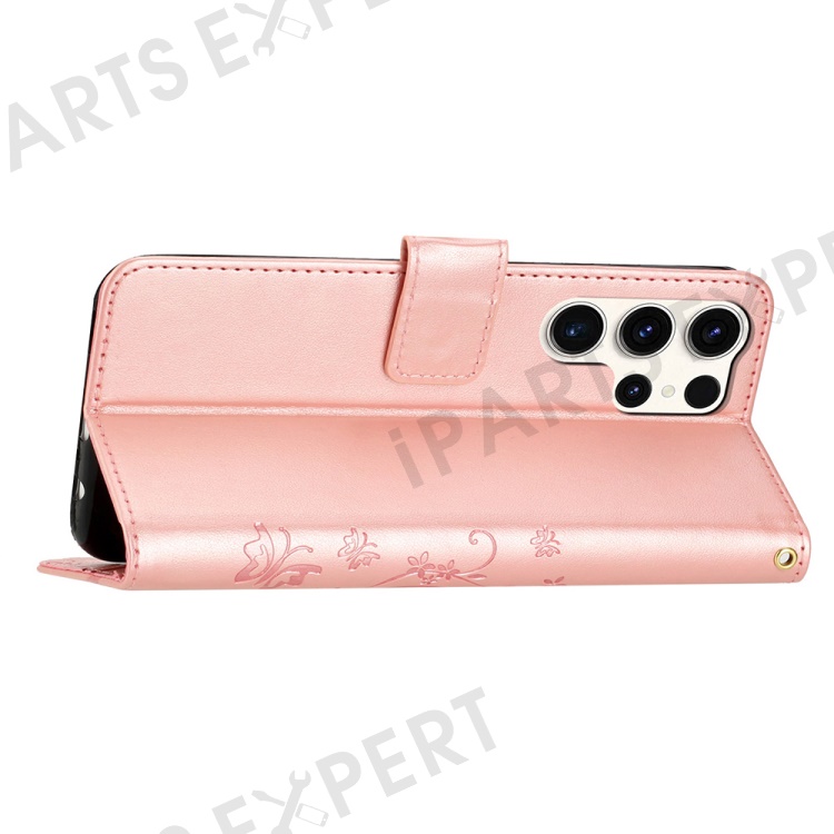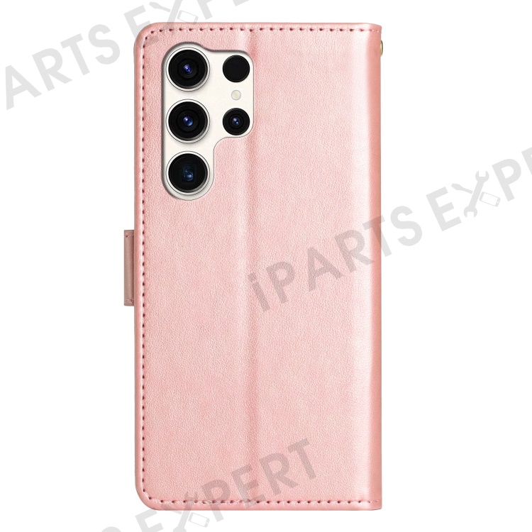 For Samsung Galaxy S25 Ultra Case PU Leather Phone Wallet Cover with Strap - Rose Gold