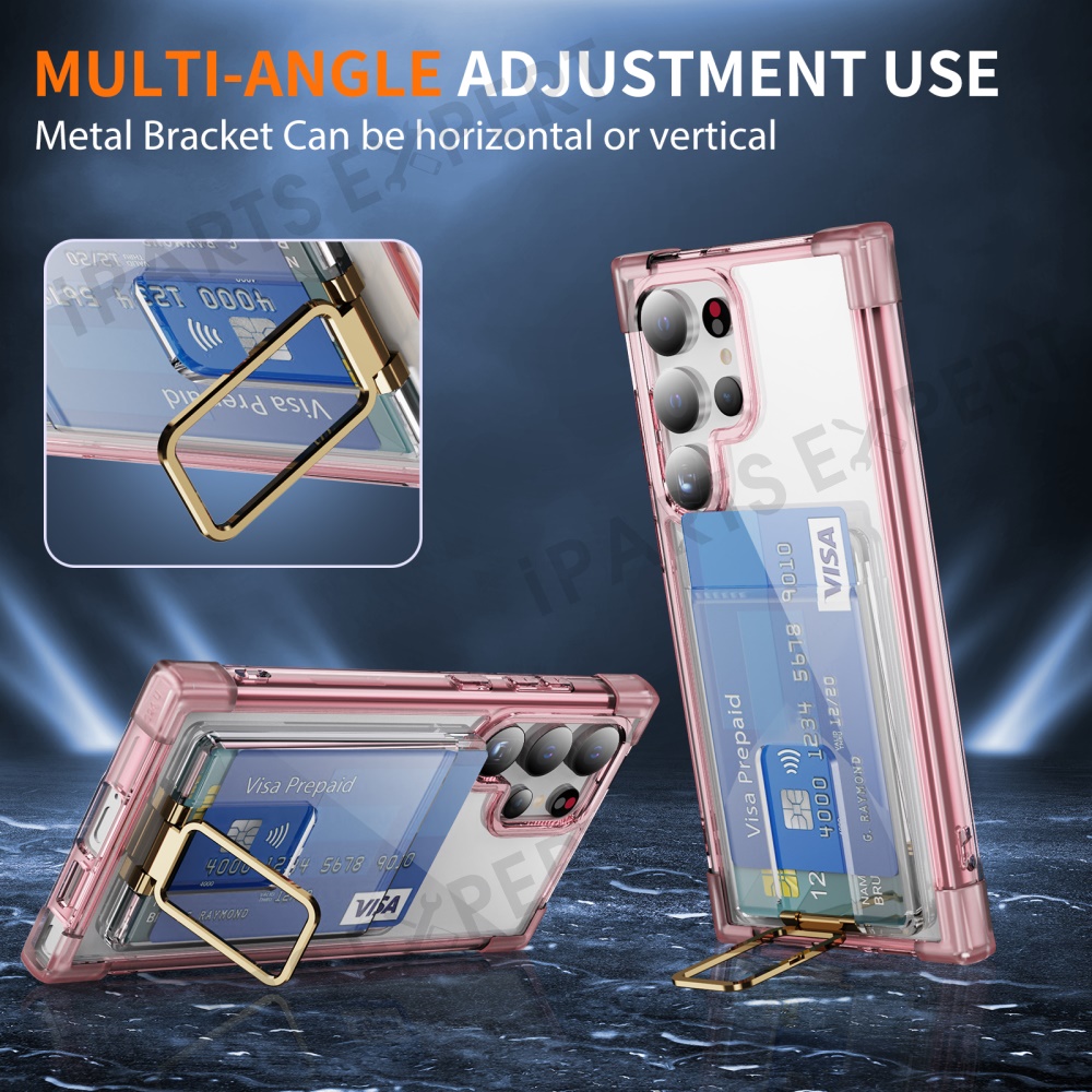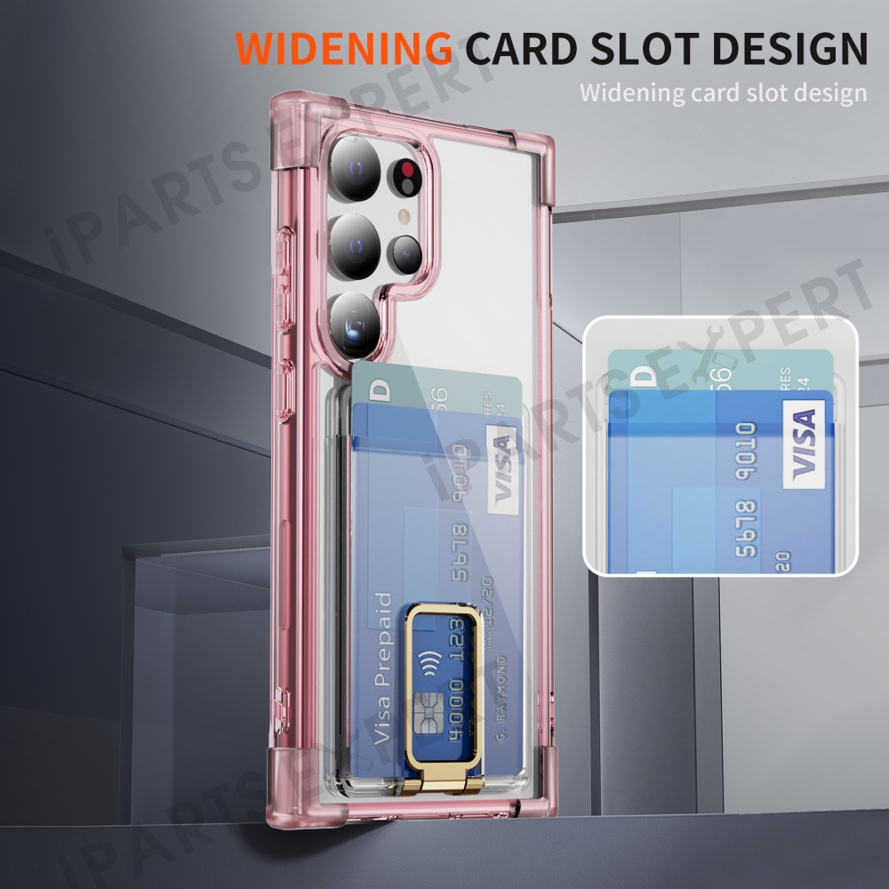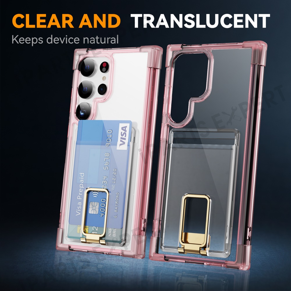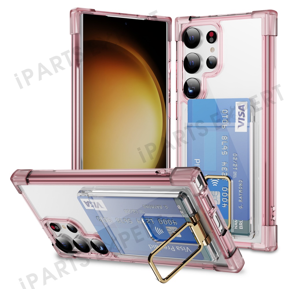 For Samsung Galaxy S25 Ultra Case Reinforced Corners TPU + Acrylic Phone Cover with Kickstand Card Holder - Transparent Pink