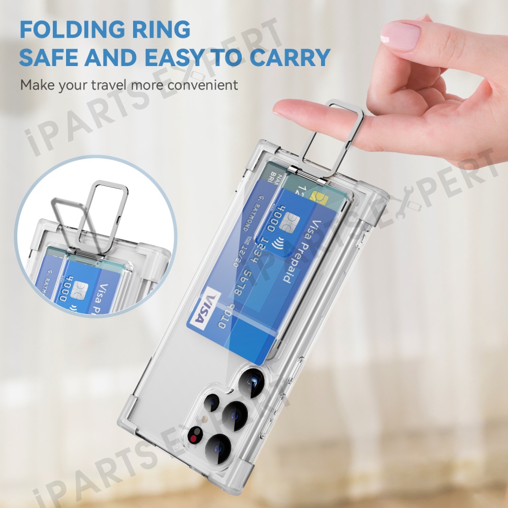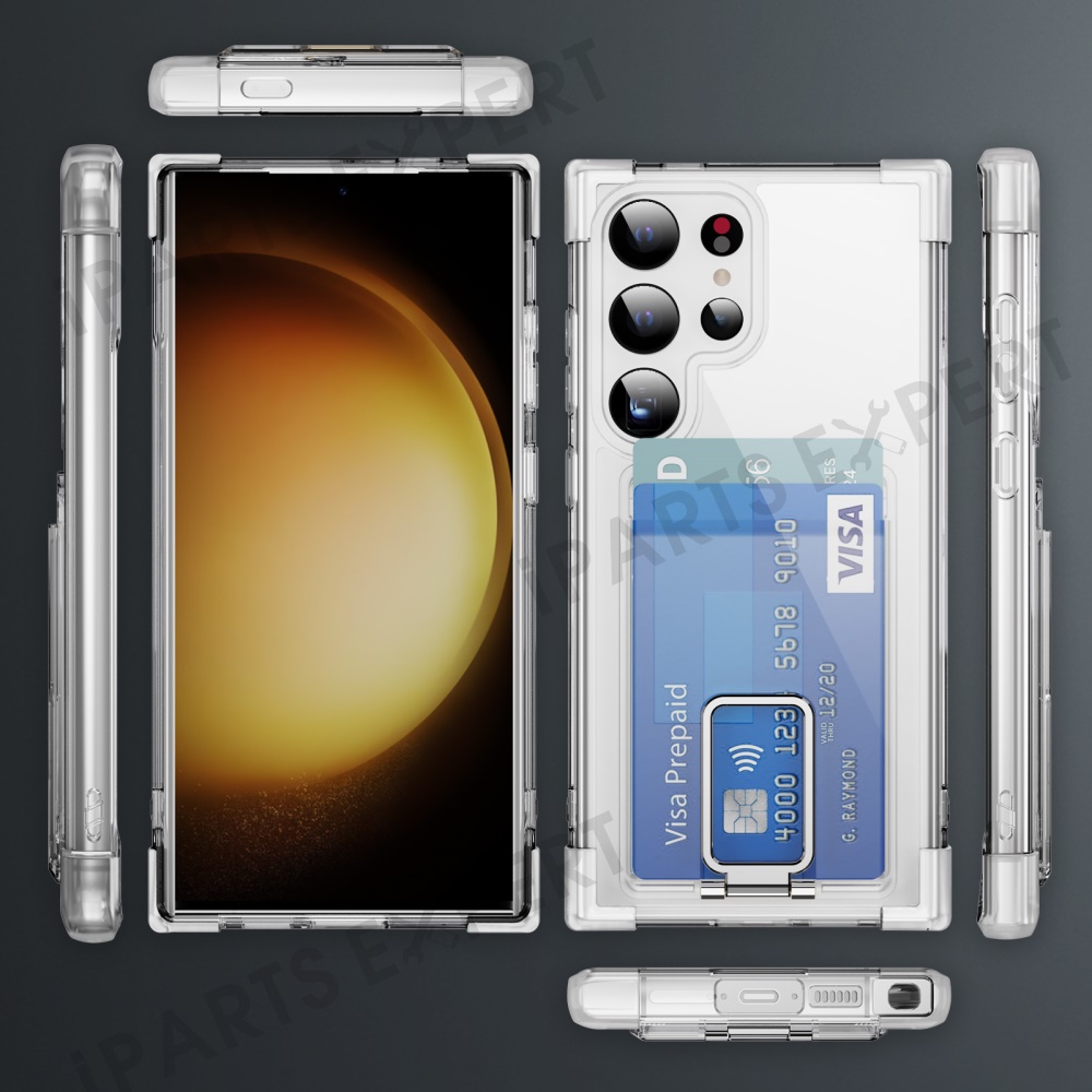 For Samsung Galaxy S25 Ultra Case Reinforced Corners TPU + Acrylic Phone Cover with Kickstand Card Holder - Transparent