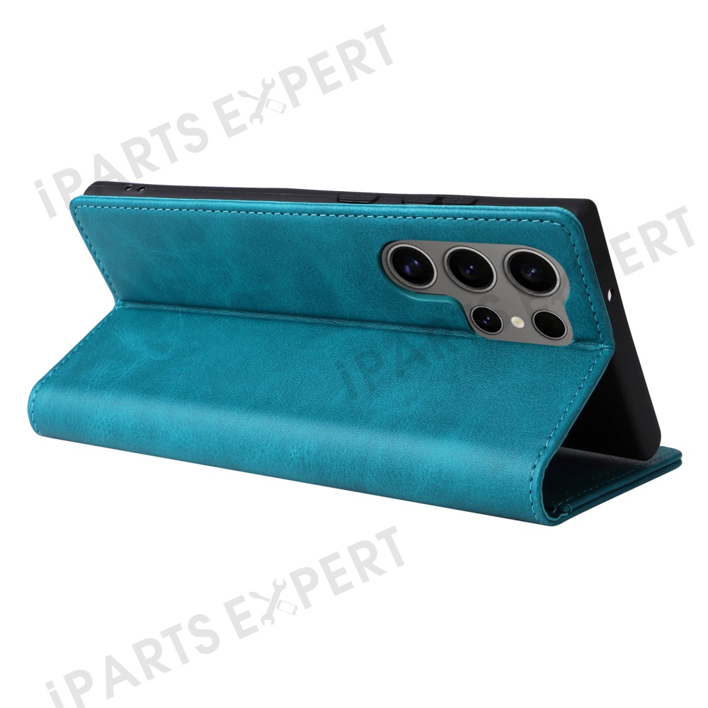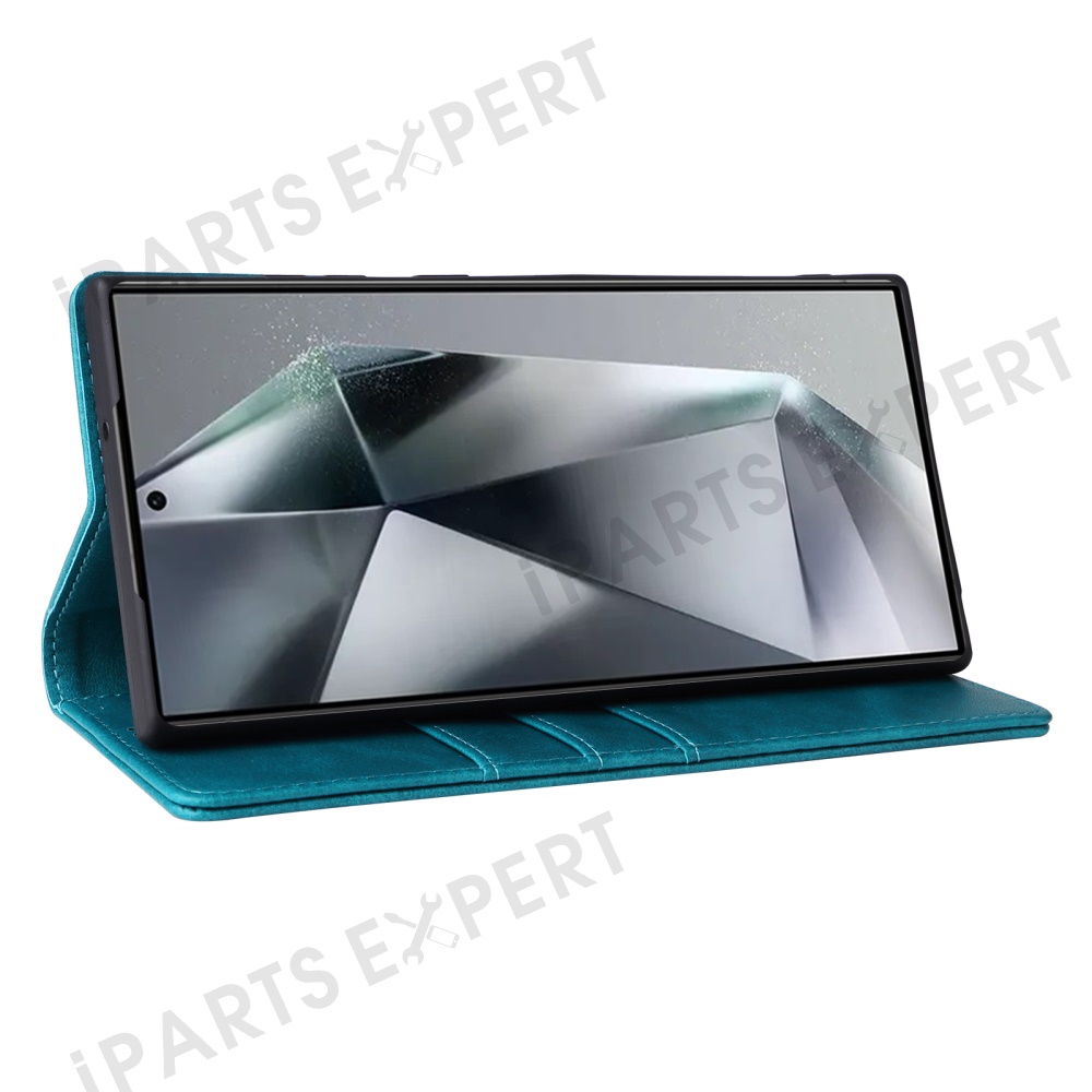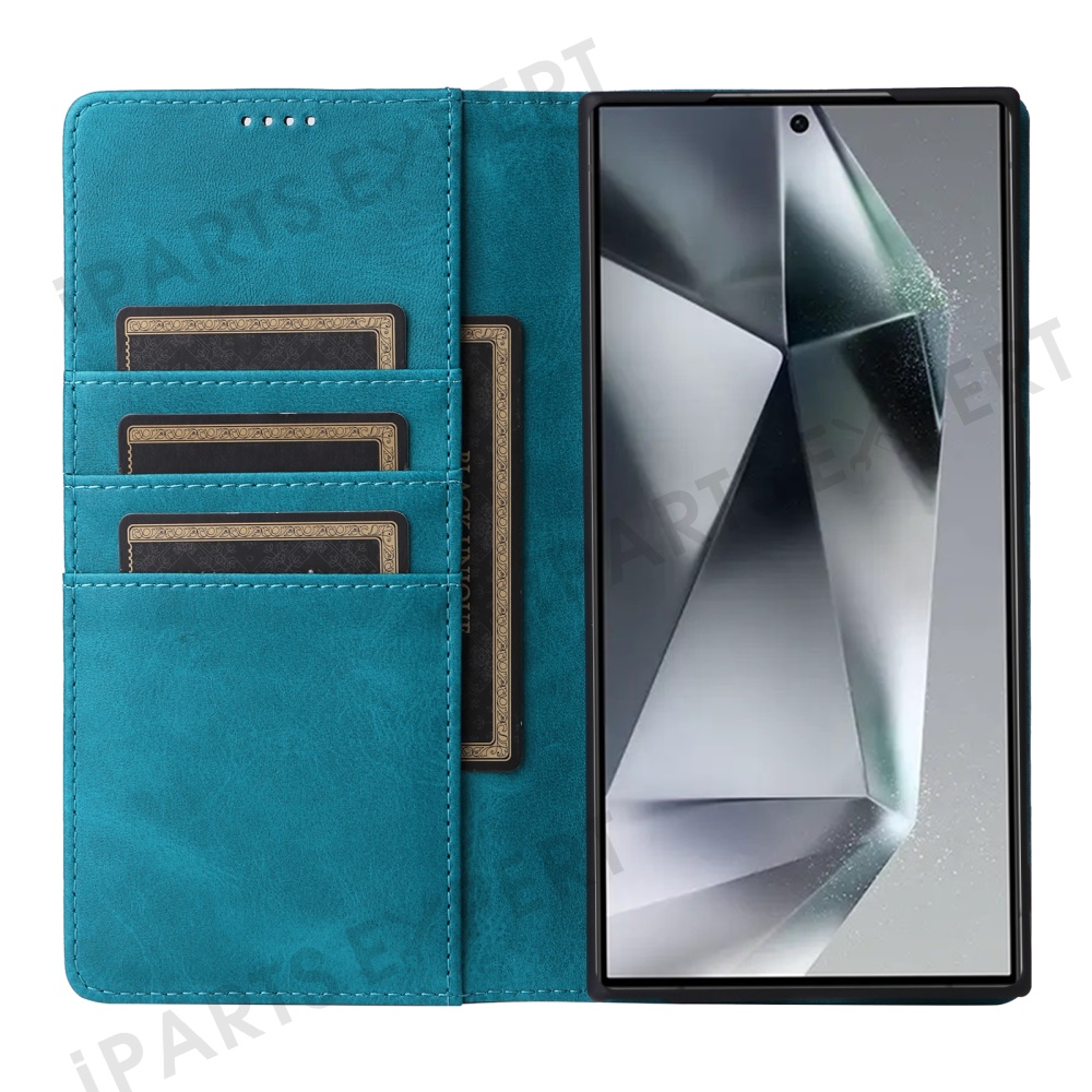 For Samsung Galaxy S25 Ultra Case RFID Blocking PU Leather Phone Wallet Cover - Peacock Blue