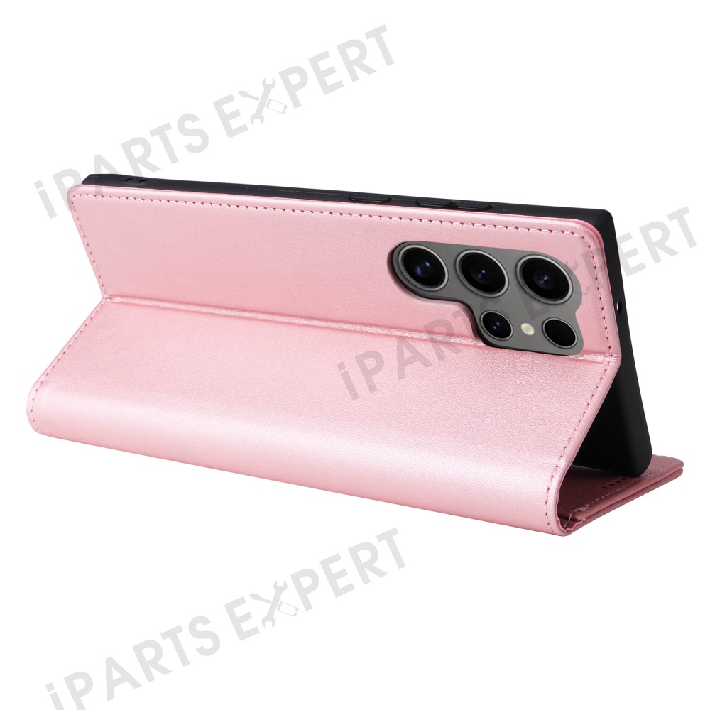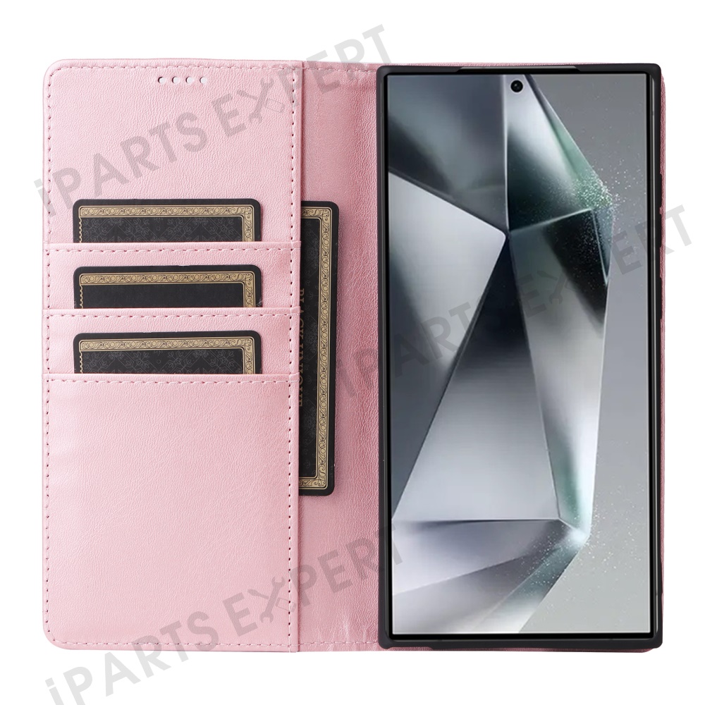 For Samsung Galaxy S25 Ultra Case RFID Blocking PU Leather Phone Wallet Cover - Pink