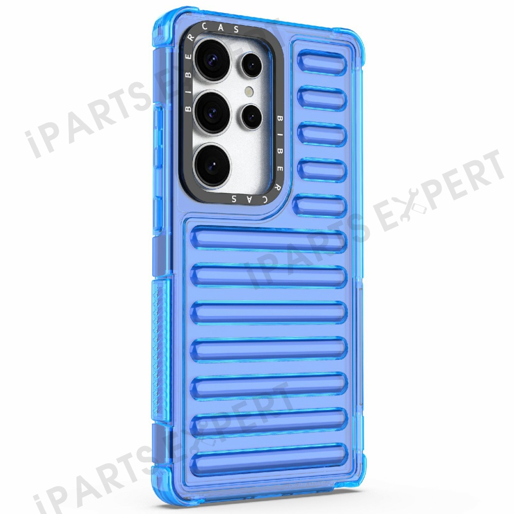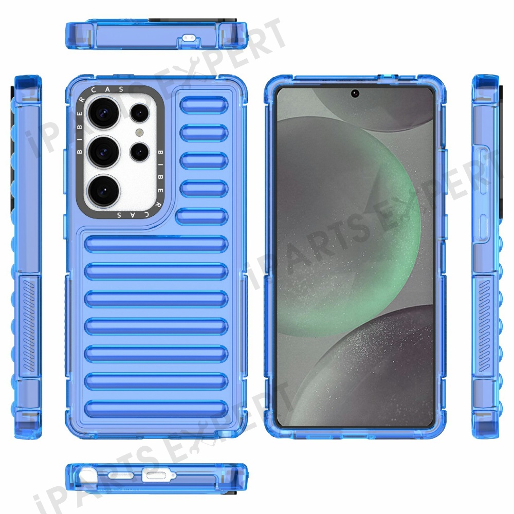 For Samsung Galaxy S25 Ultra Case Stripe Design Anti-Slip Detachable TPU+PC Phone Cover - Blue