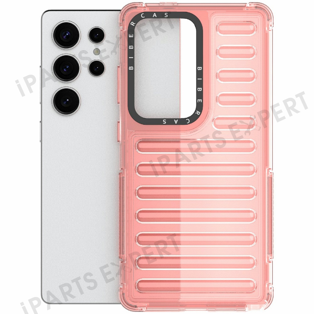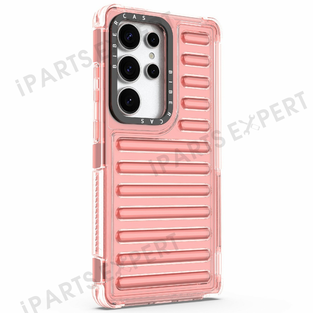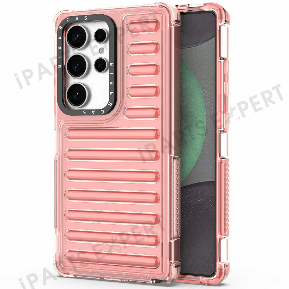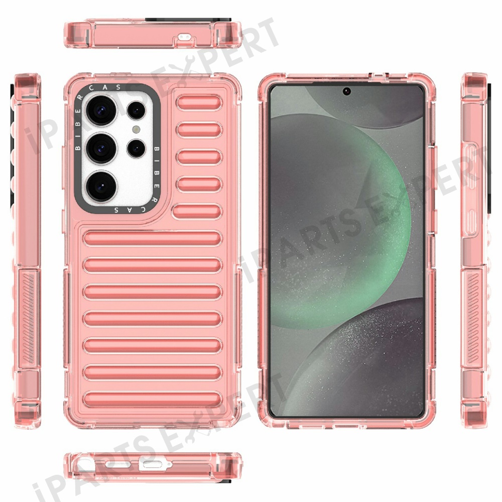 For Samsung Galaxy S25 Ultra Case Stripe Design Anti-Slip Detachable TPU+PC Phone Cover - Deep Pink