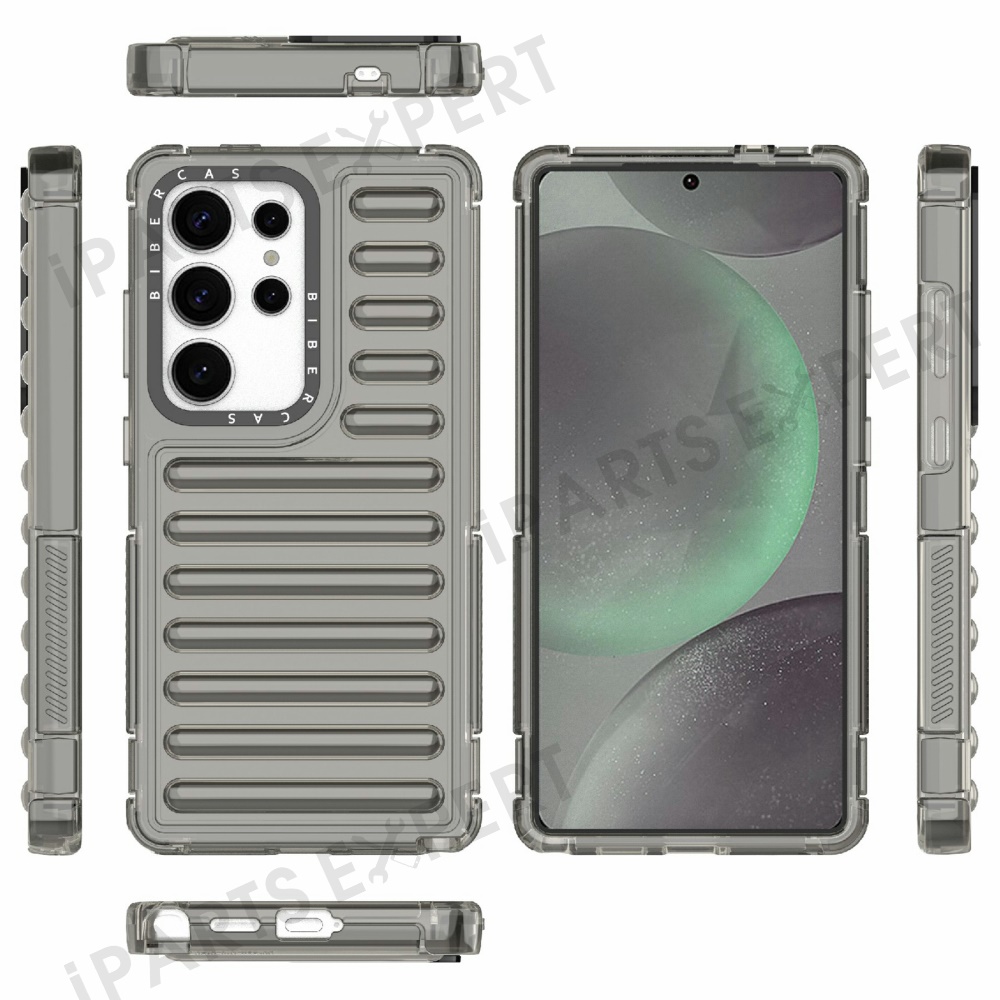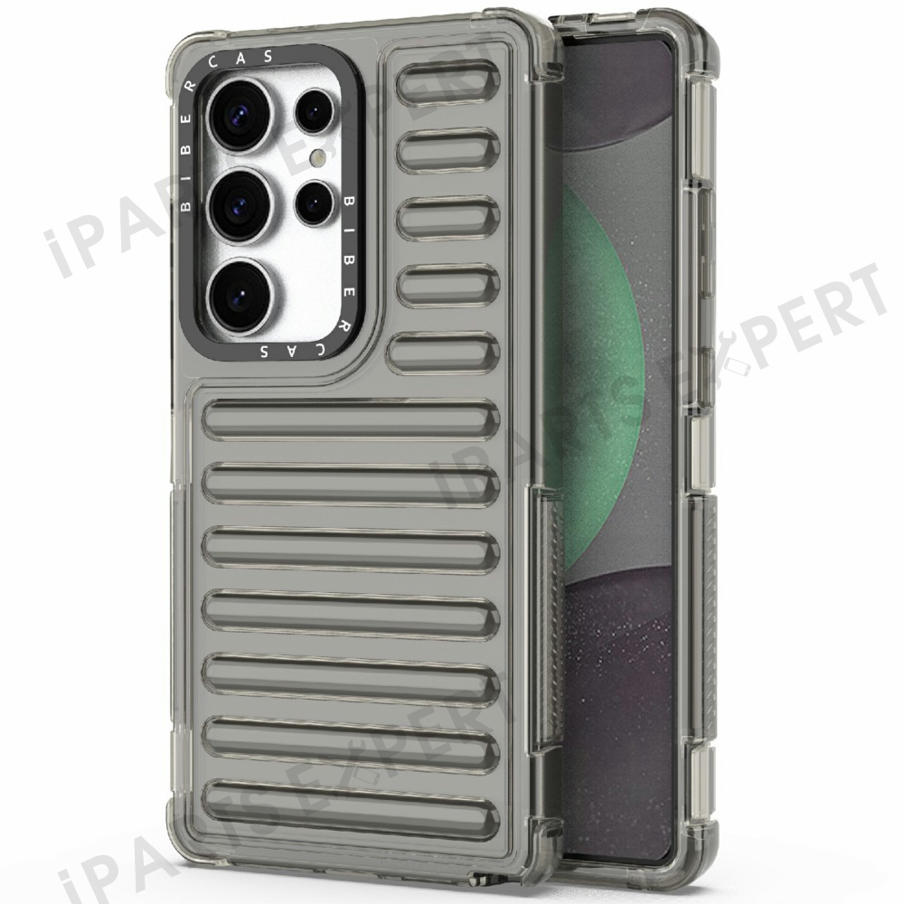 For Samsung Galaxy S25 Ultra Case Stripe Design Anti-Slip Detachable TPU+PC Phone Cover - Grey