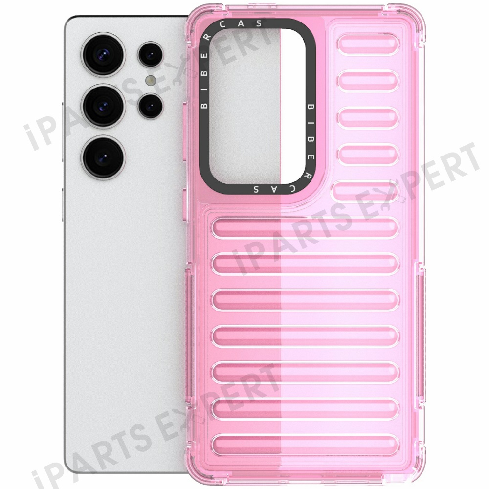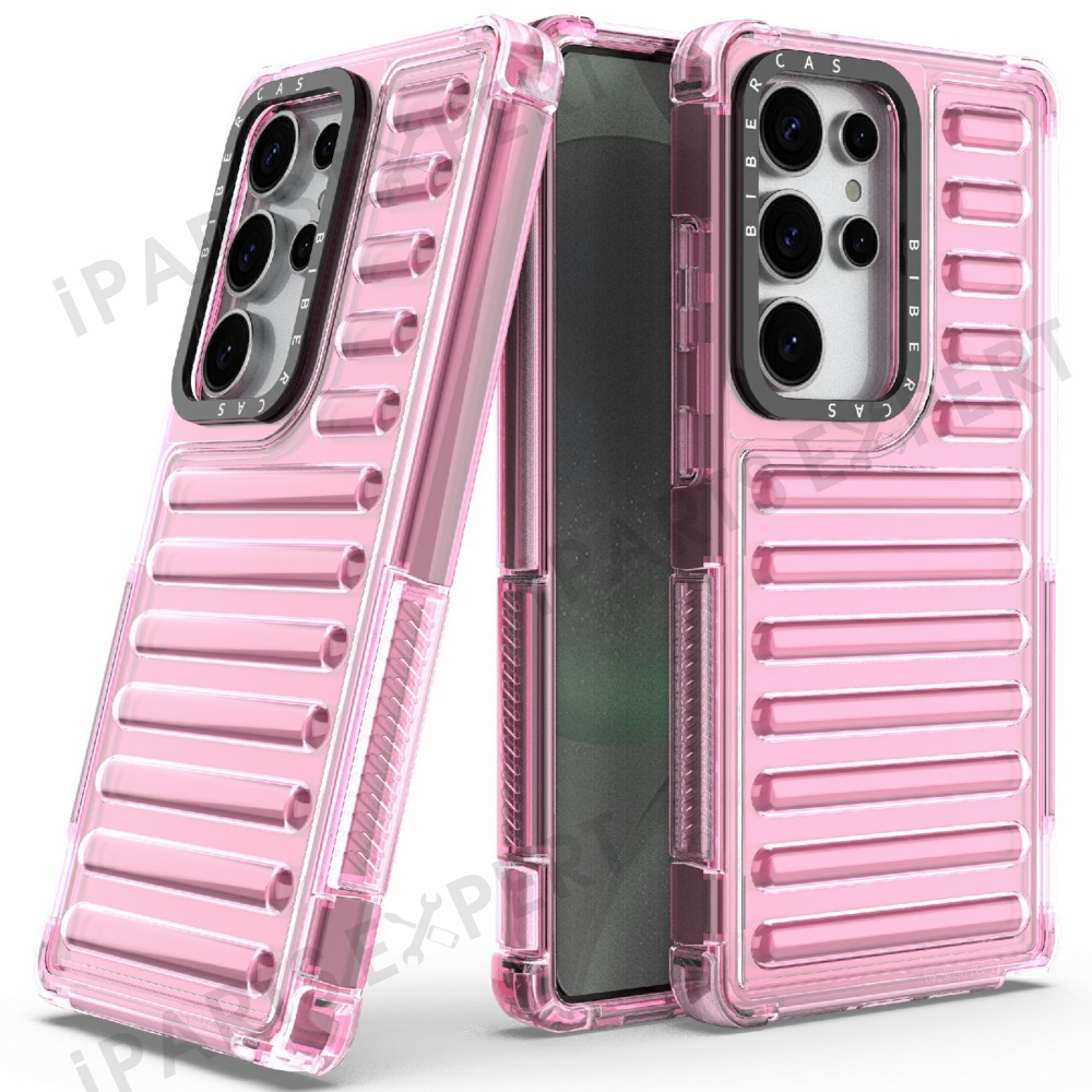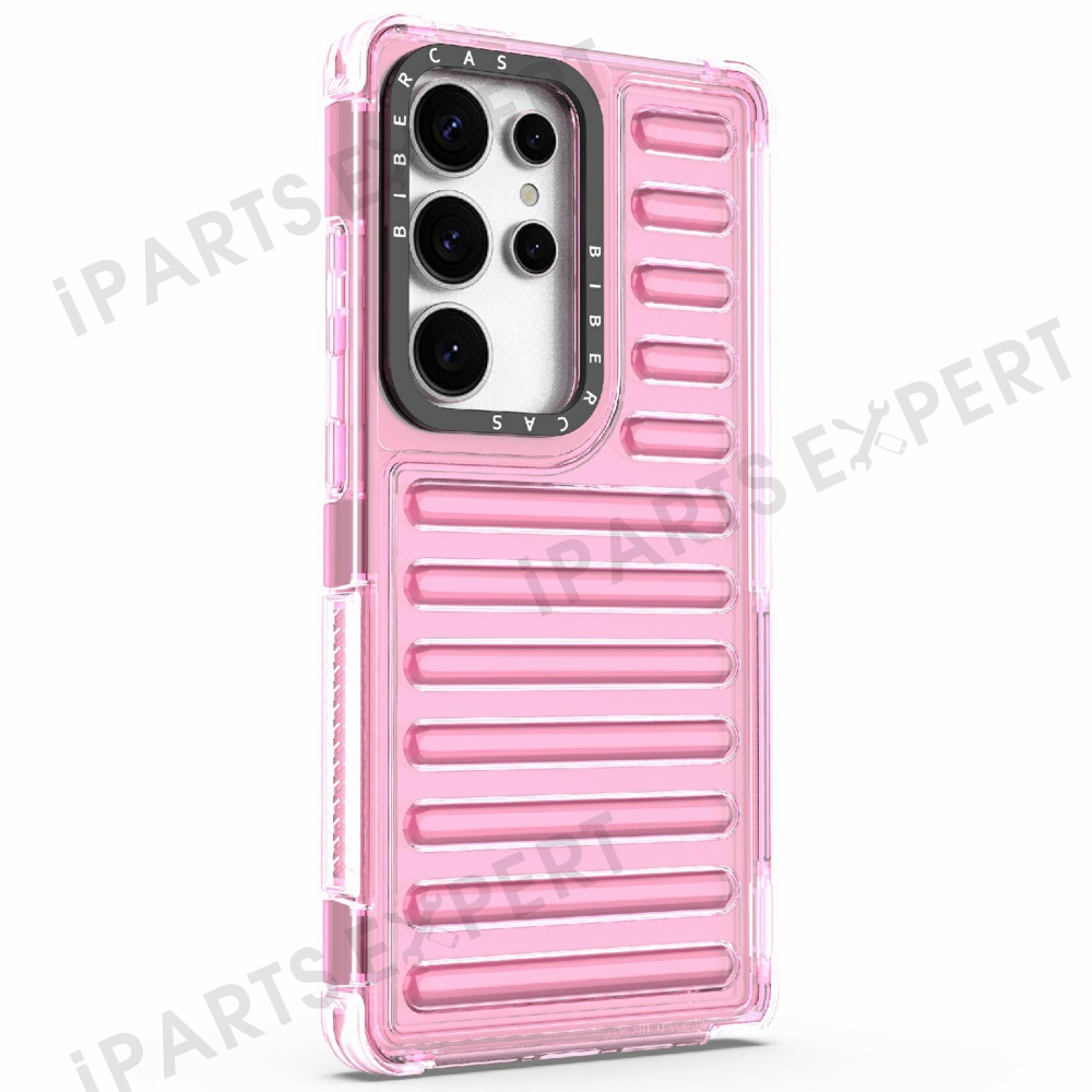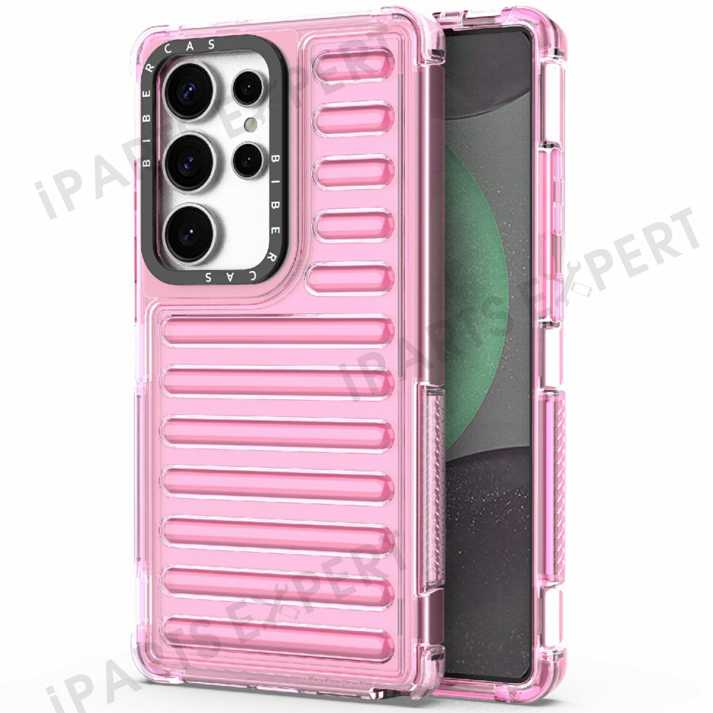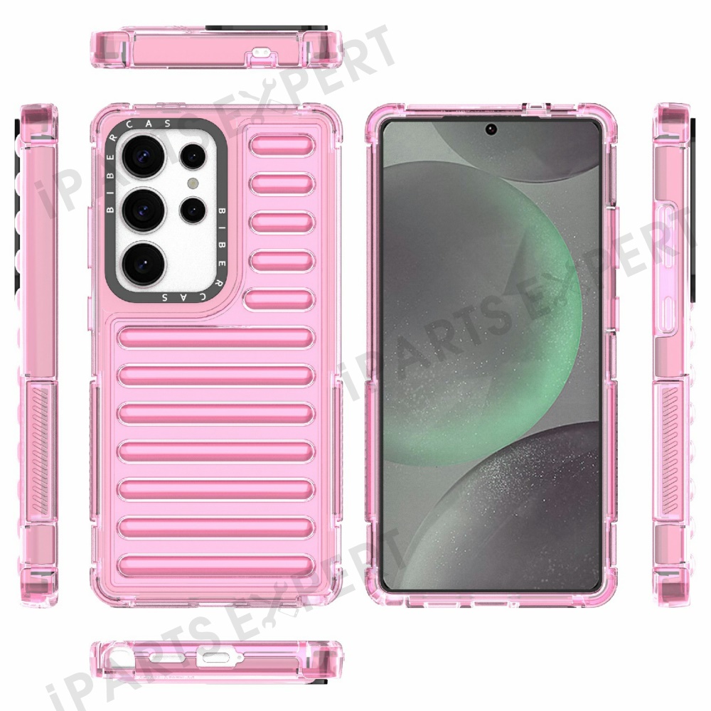 For Samsung Galaxy S25 Ultra Case Stripe Design Anti-Slip Detachable TPU+PC Phone Cover - Light Pink
