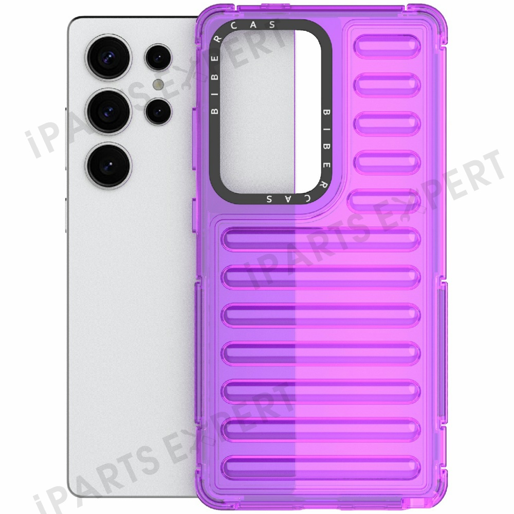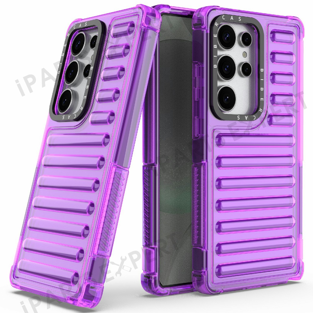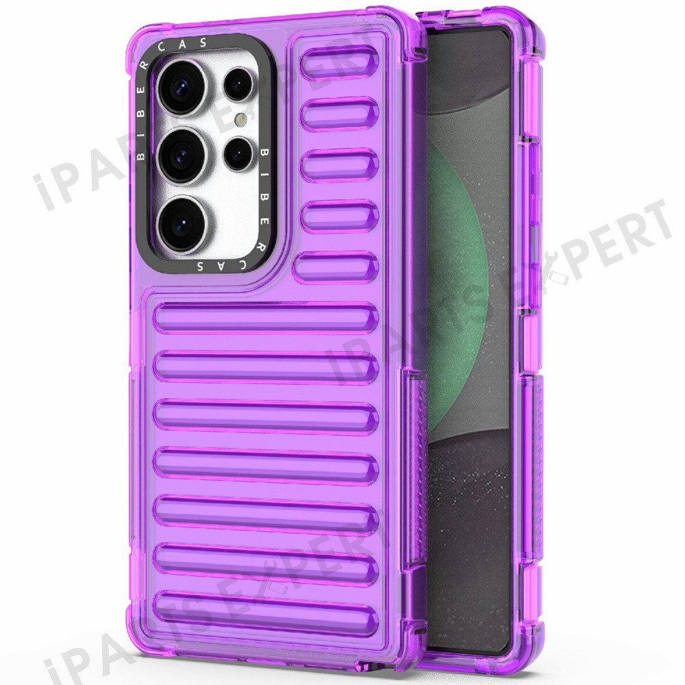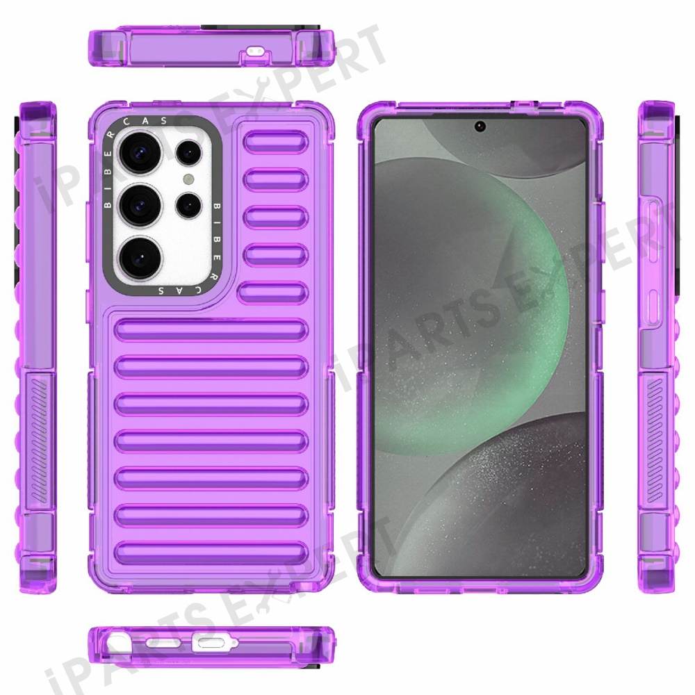 For Samsung Galaxy S25 Ultra Case Stripe Design Anti-Slip Detachable TPU+PC Phone Cover - Purple