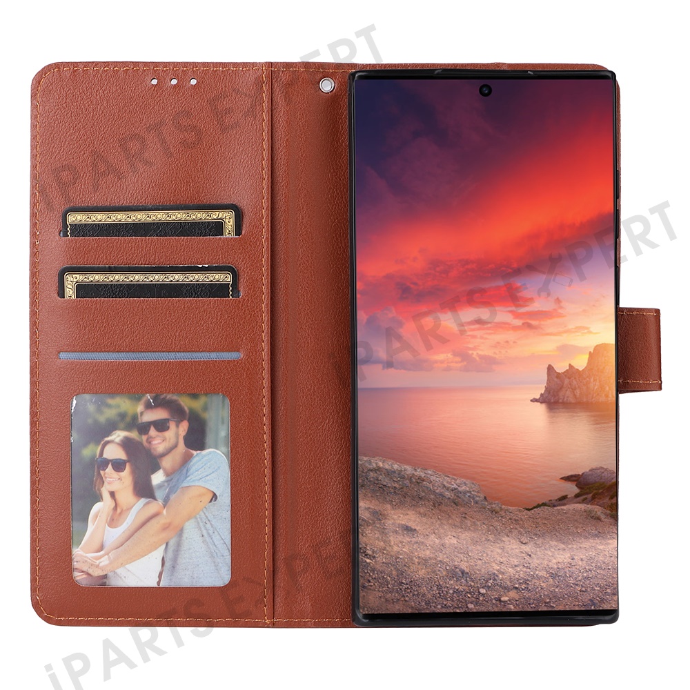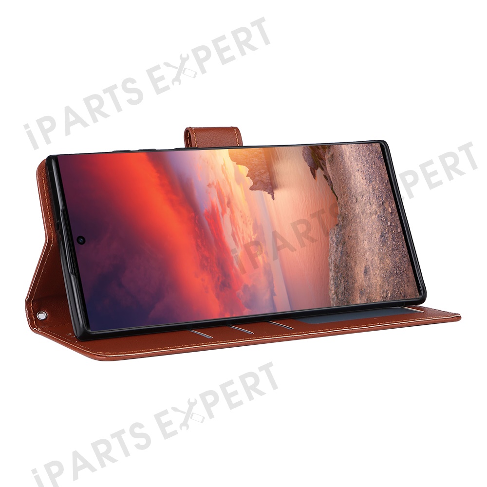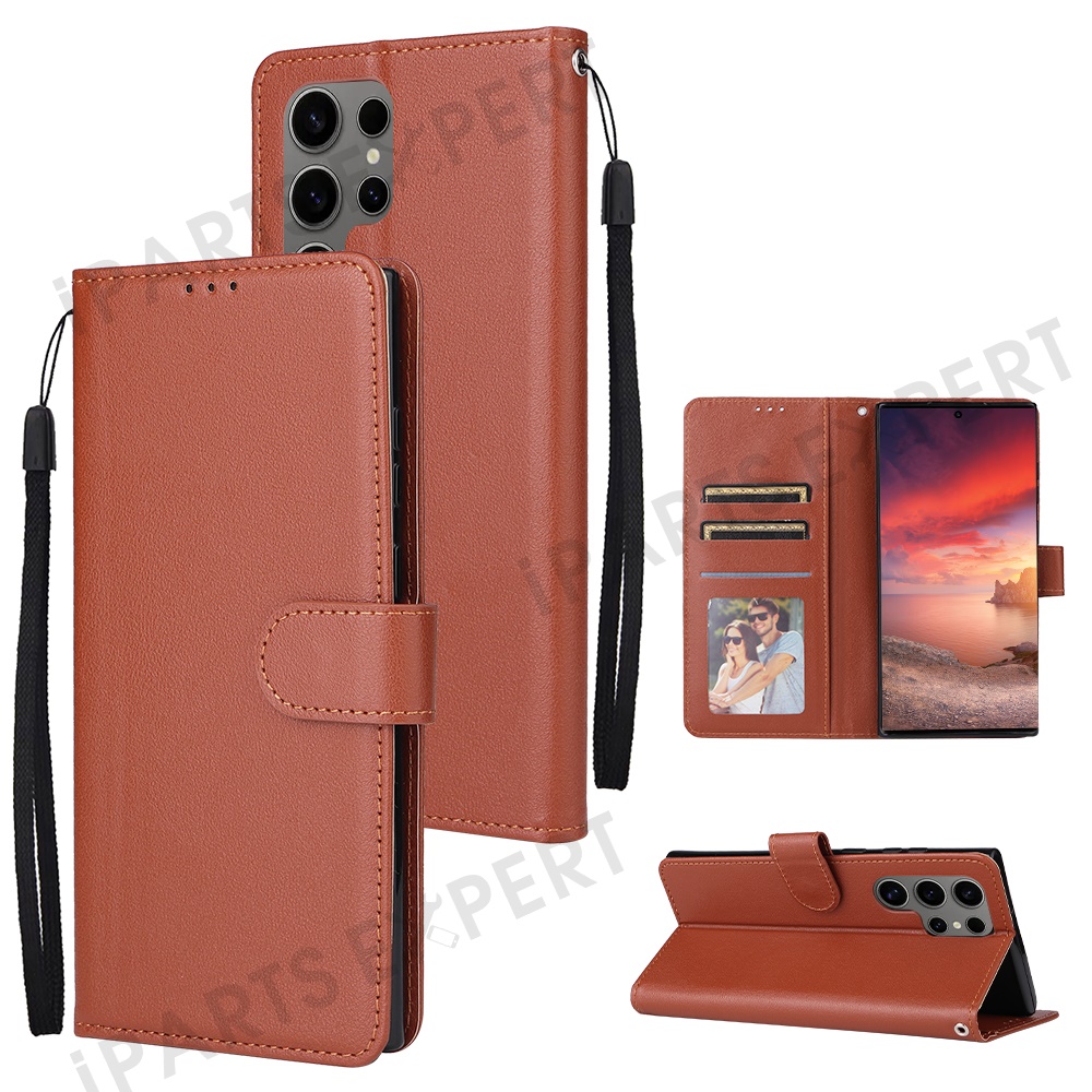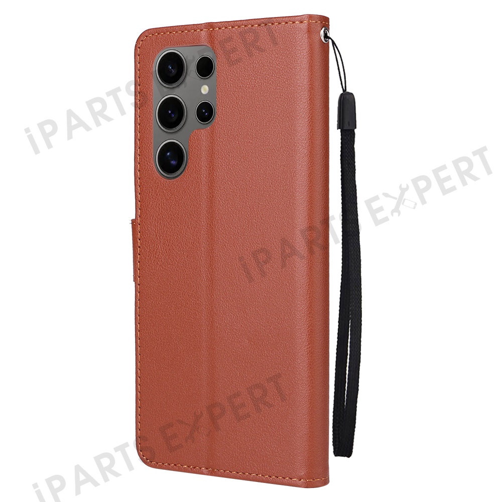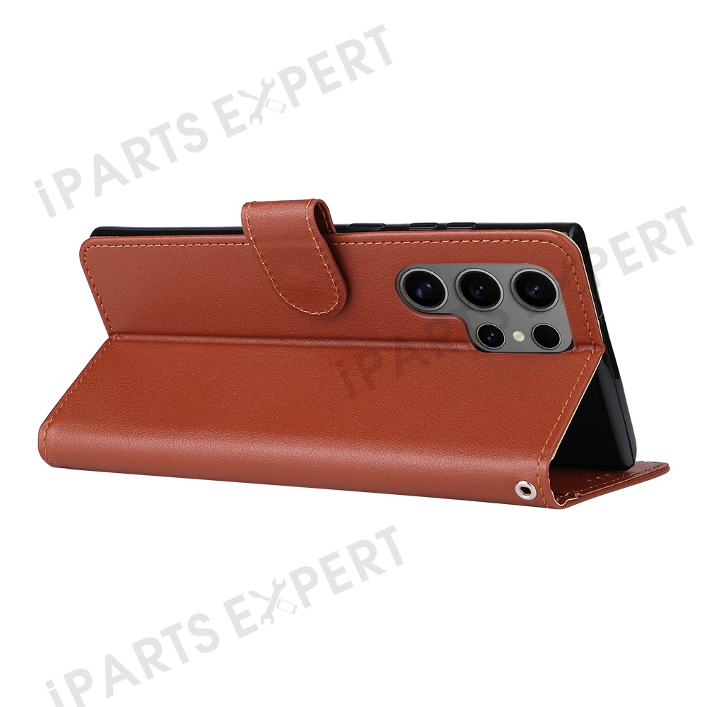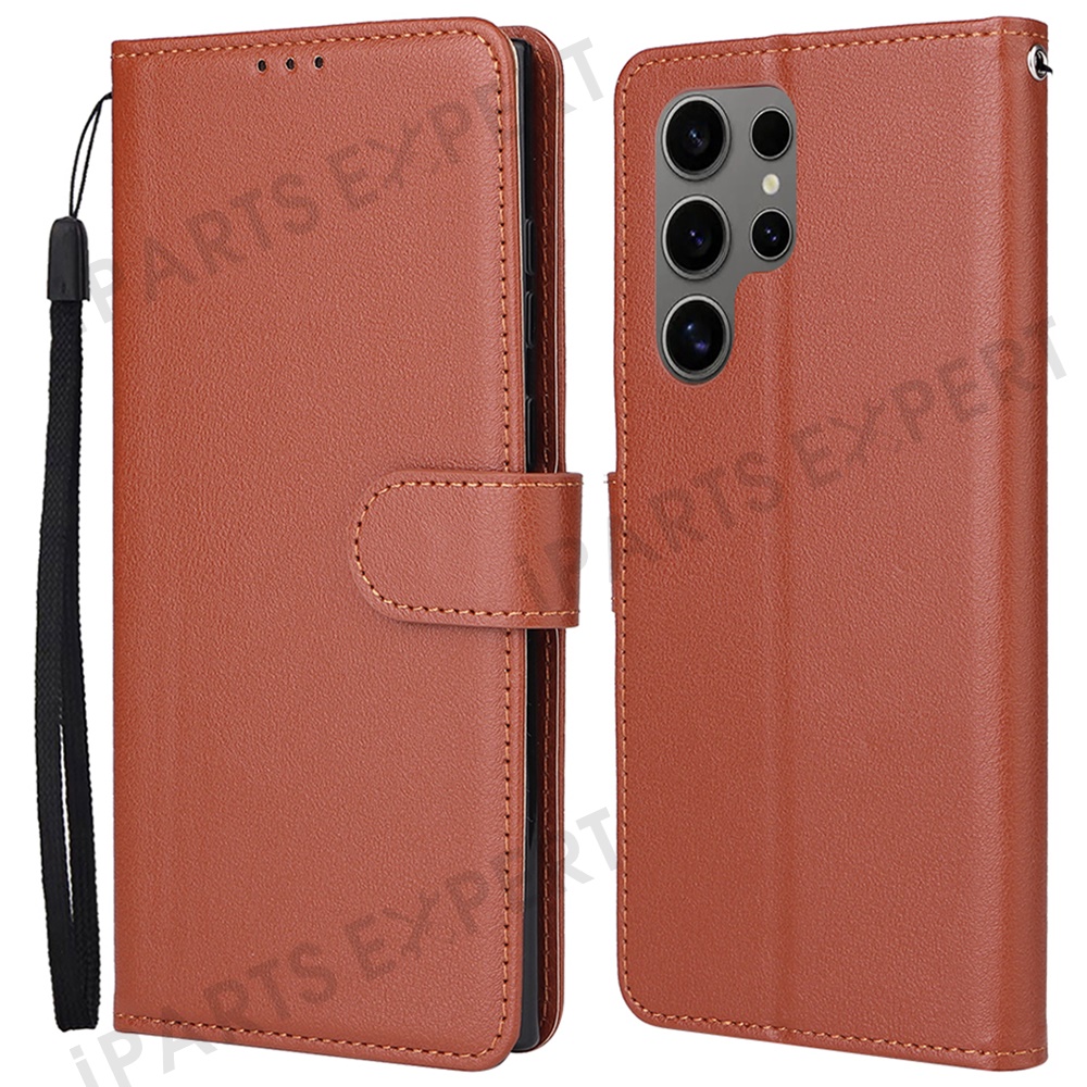For Samsung Galaxy S25 Ultra Case Wallet Stand View PU Leather Phone Cover - Brown