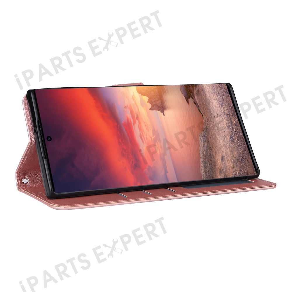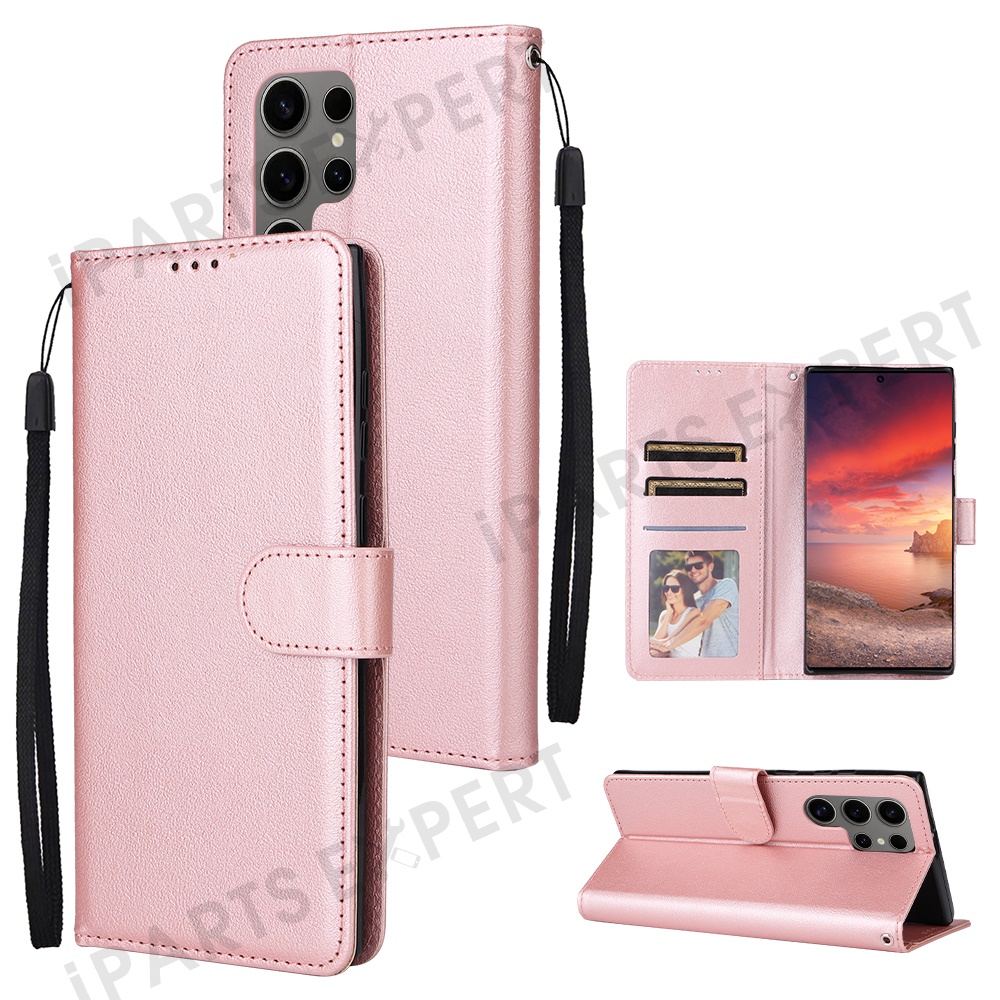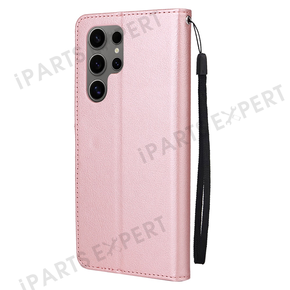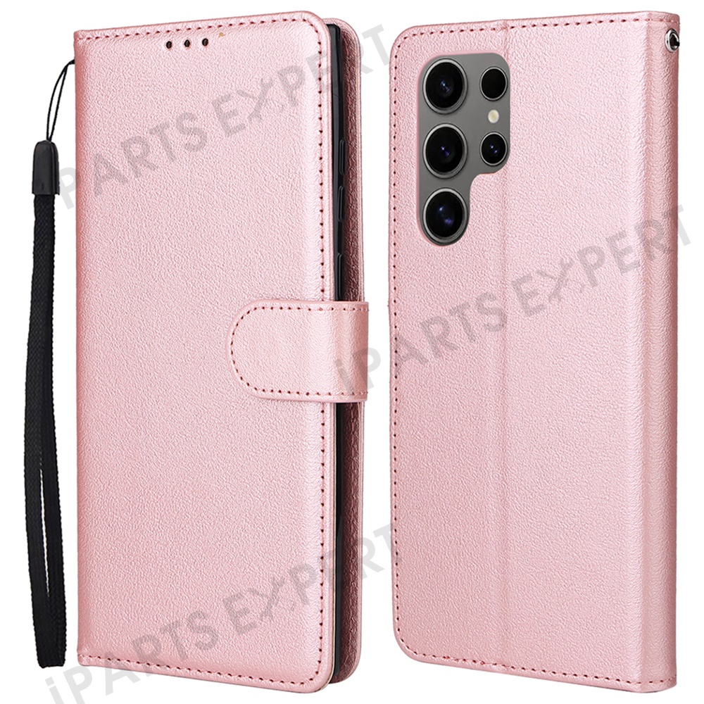 For Samsung Galaxy S25 Ultra Case Wallet Stand View PU Leather Phone Cover - Rose Gold