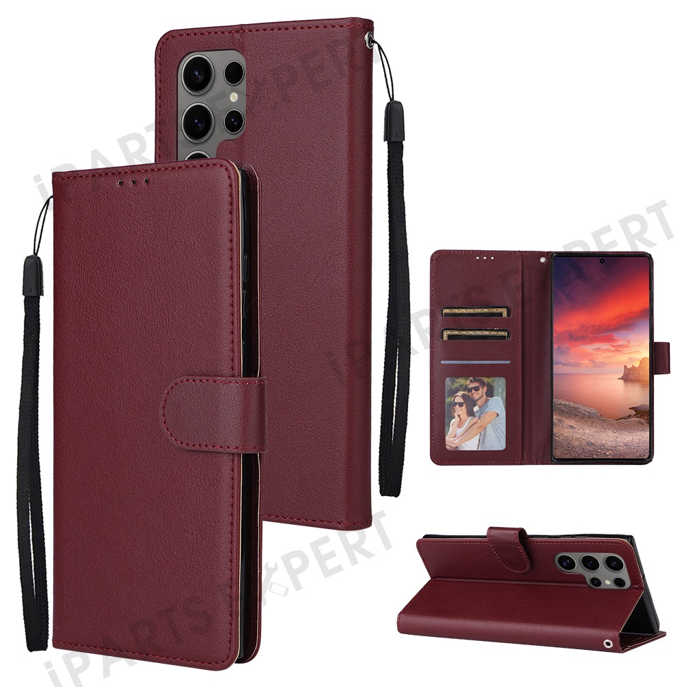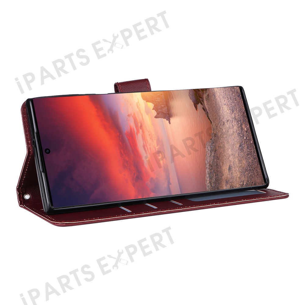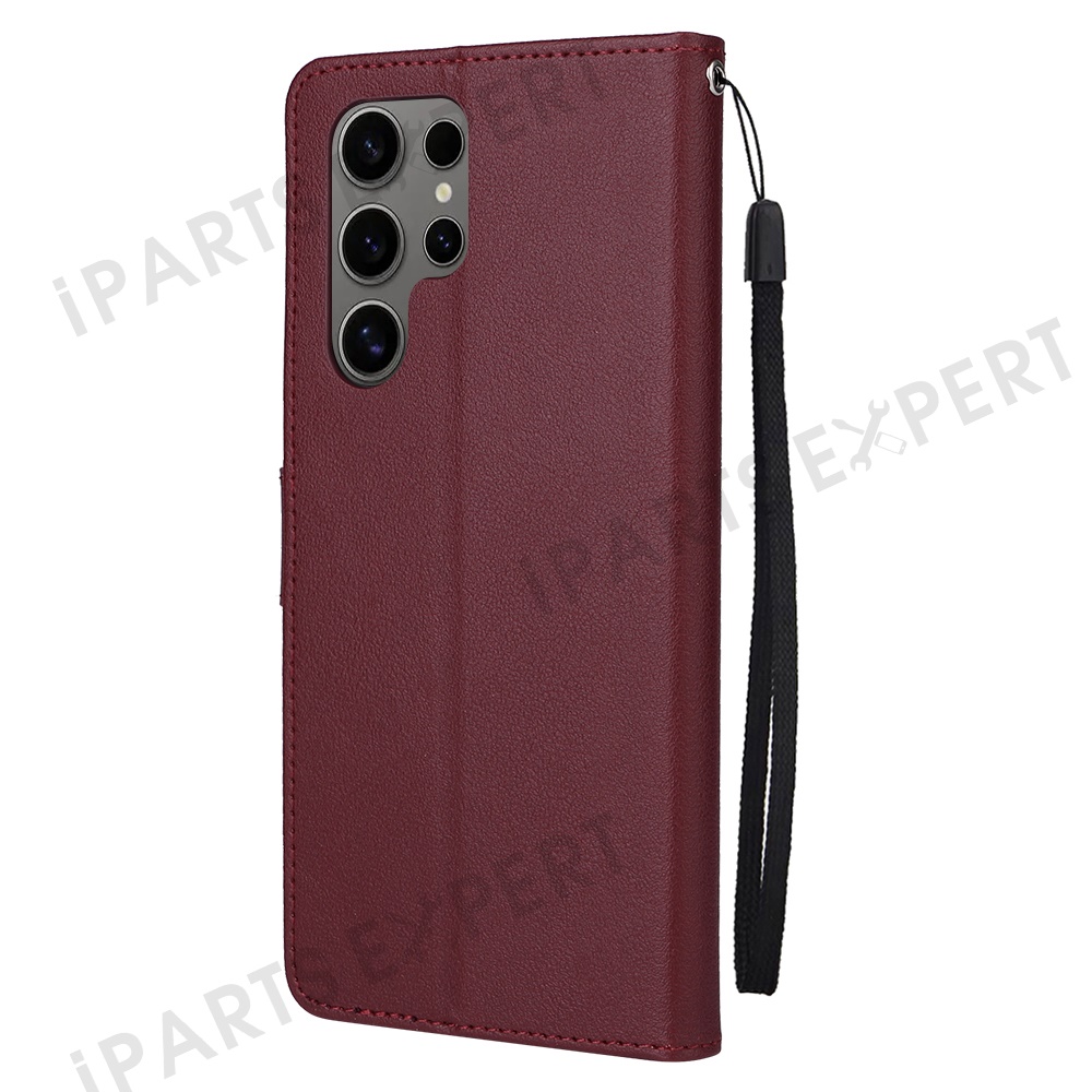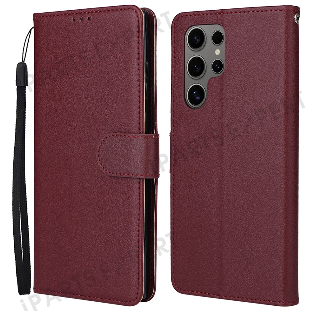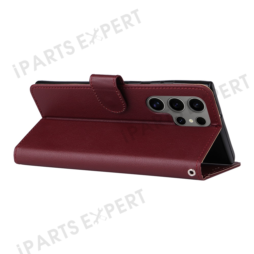 For Samsung Galaxy S25 Ultra Case Wallet Stand View PU Leather Phone Cover - Wine Red