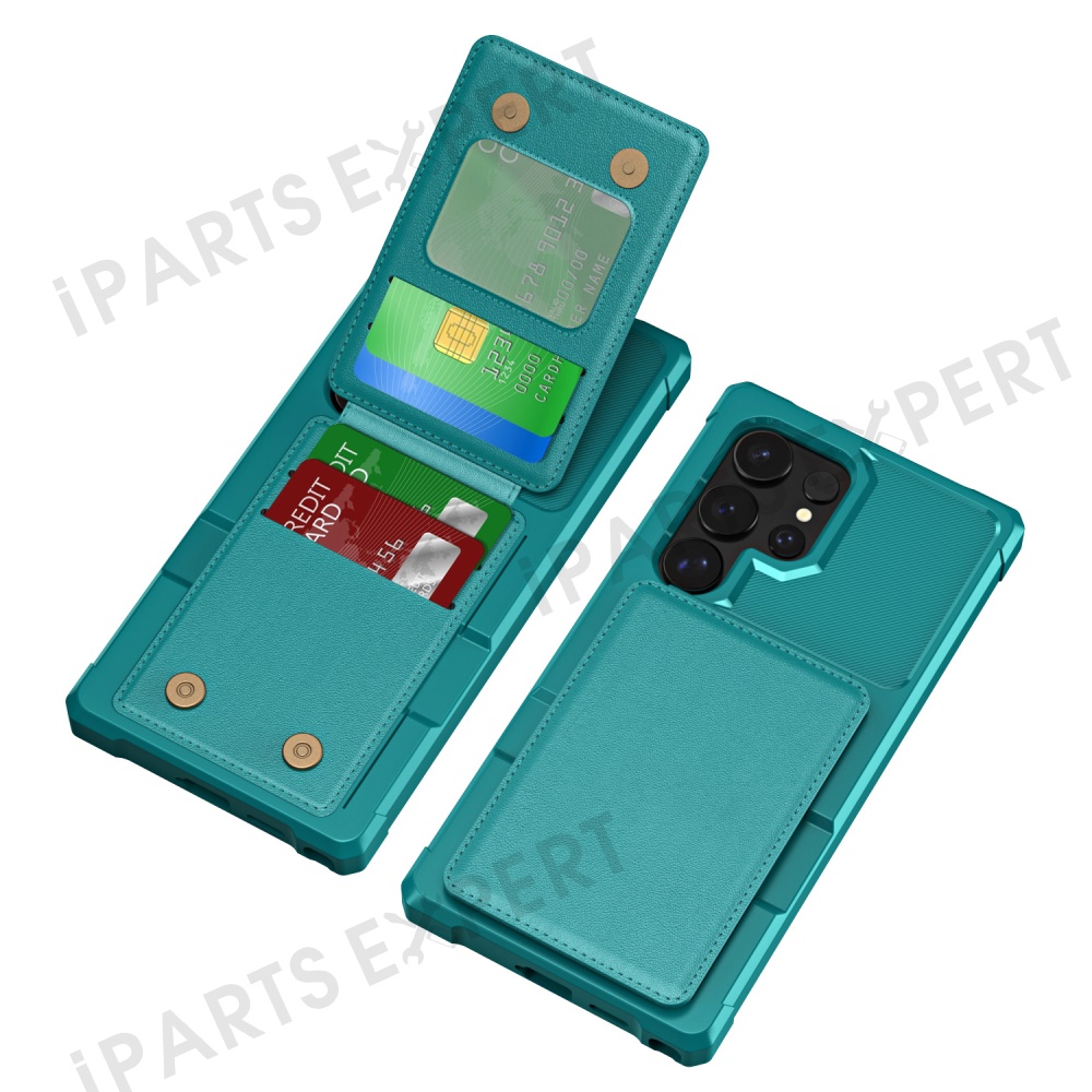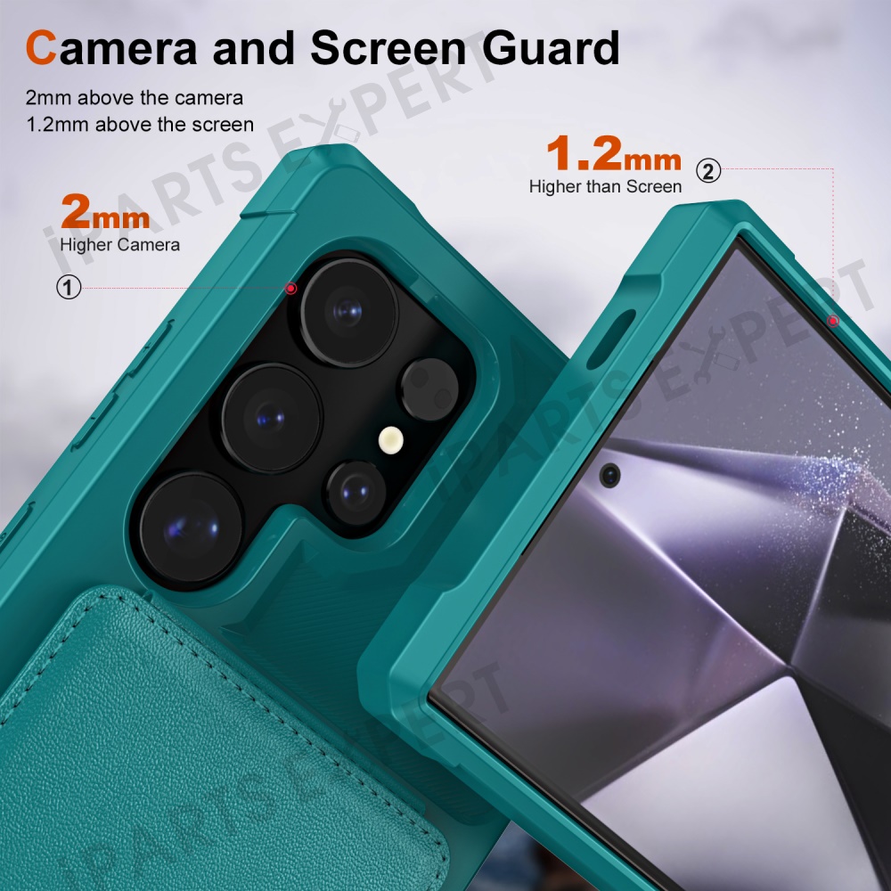 For Samsung Galaxy S25 Ultra Case with Card Slot Kickstand PU Leather + TPU Phone Cover - Green