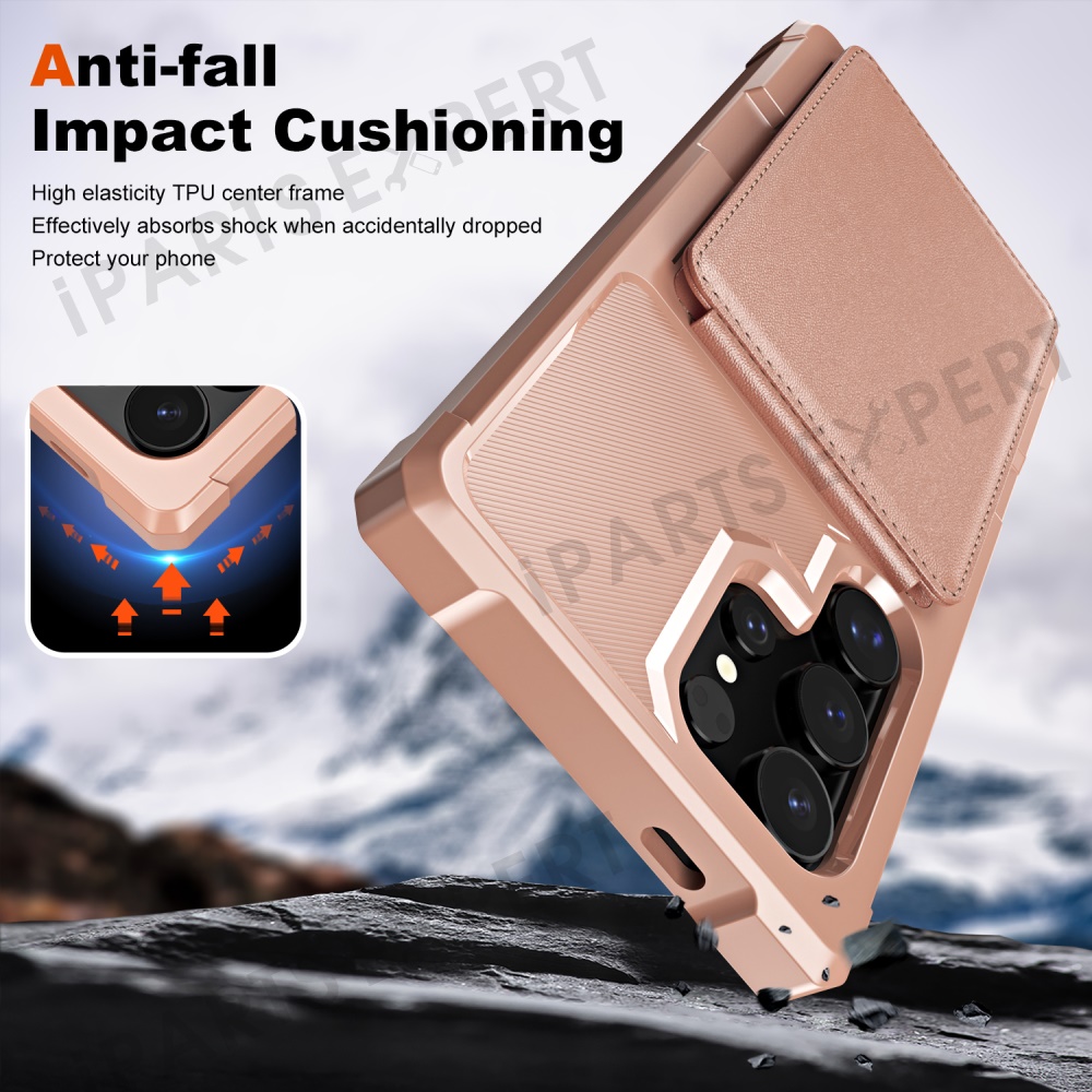 For Samsung Galaxy S25 Ultra Case with Card Slot Kickstand PU Leather + TPU Phone Cover - Rose Gold