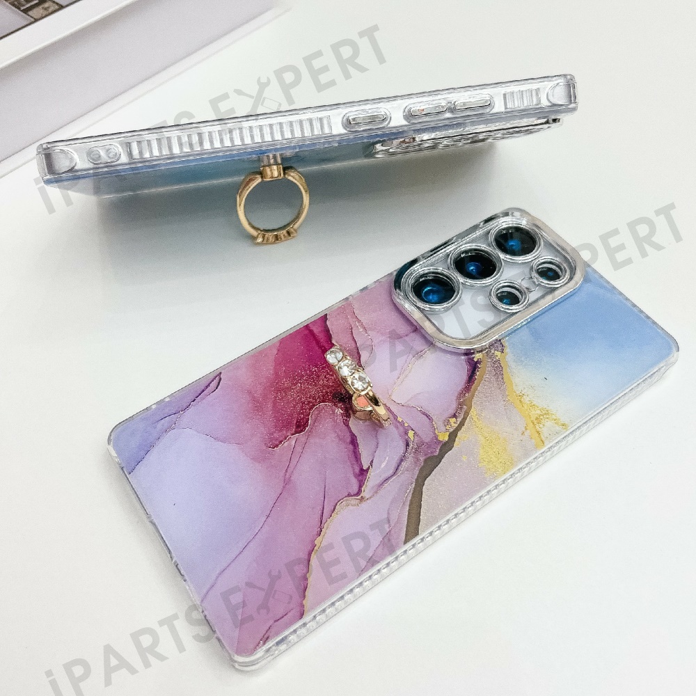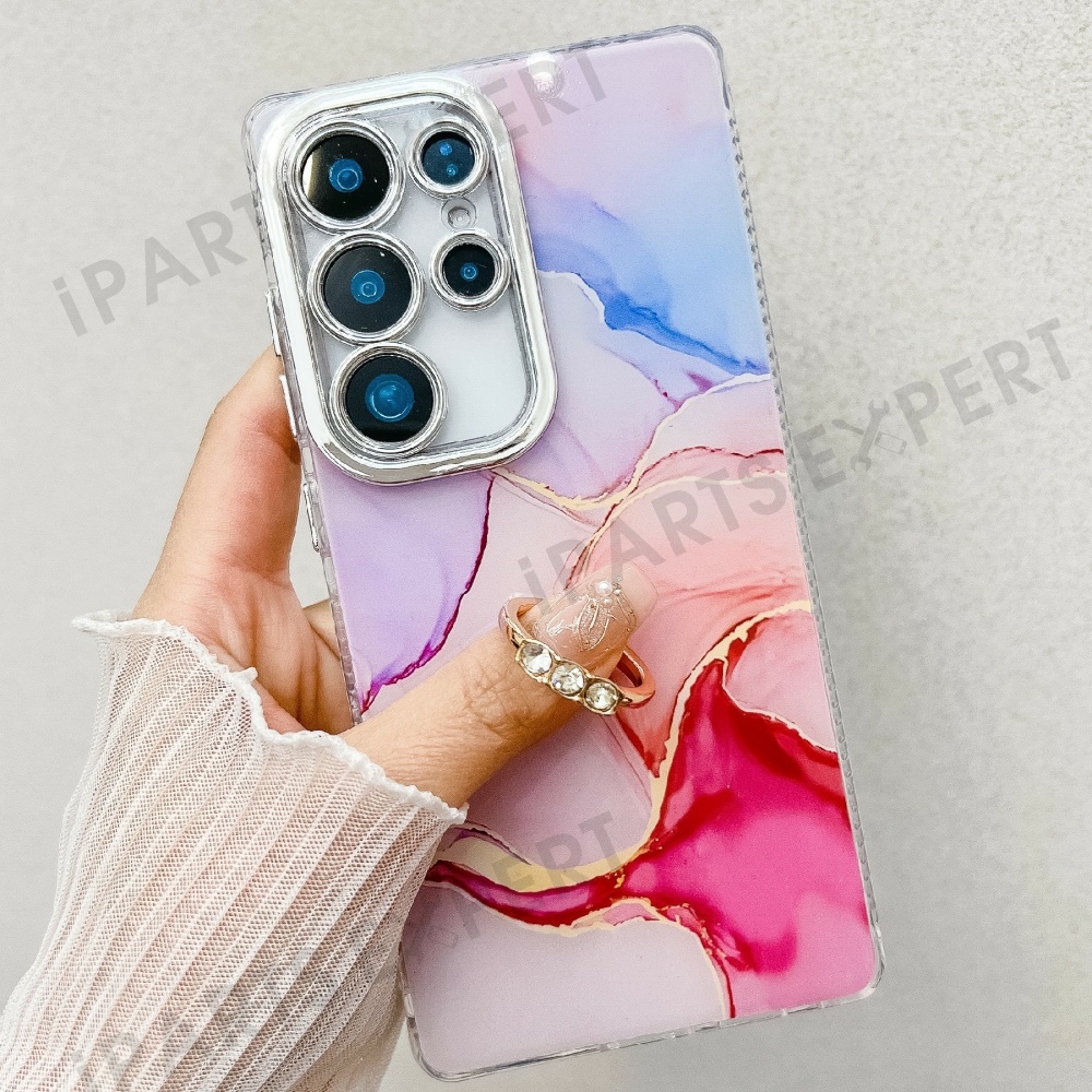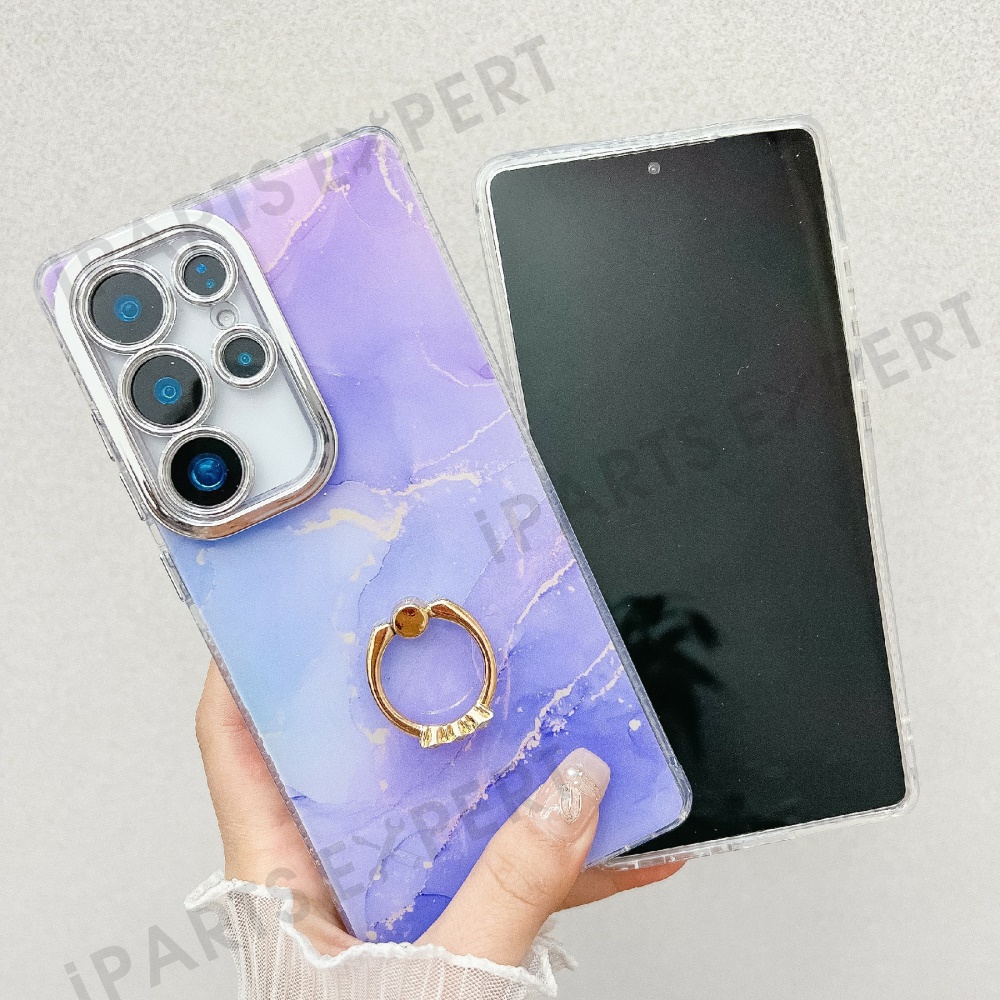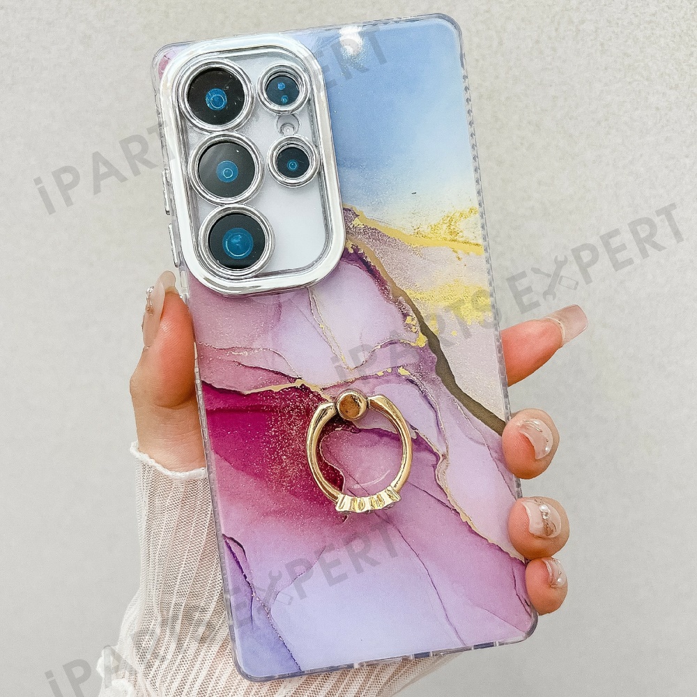 For Samsung Galaxy S25 Ultra Case with Kickstand IMD Marble Pattern Electroplated Phone Cover - S12