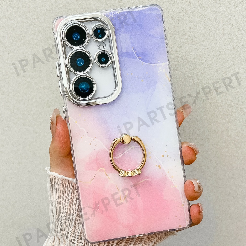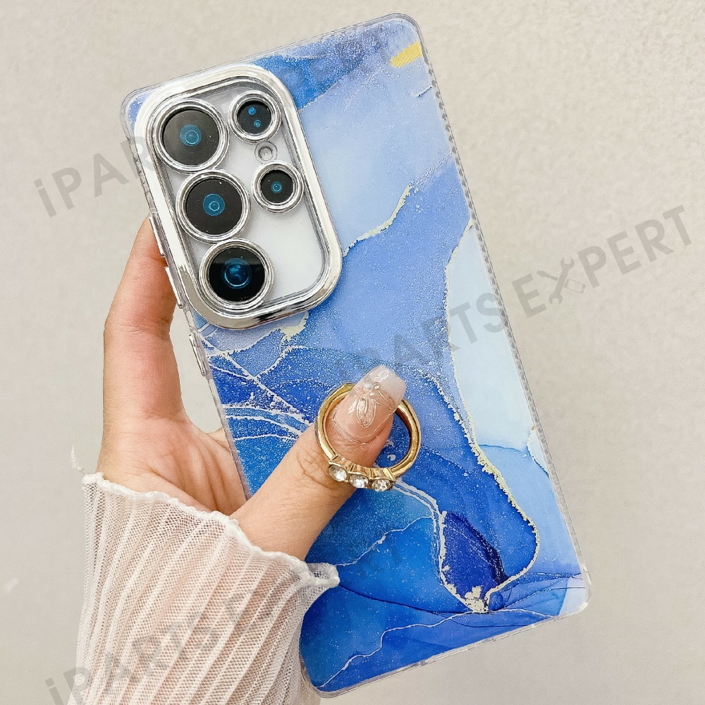 For Samsung Galaxy S25 Ultra Case with Kickstand IMD Marble Pattern Electroplated Phone Cover - S14