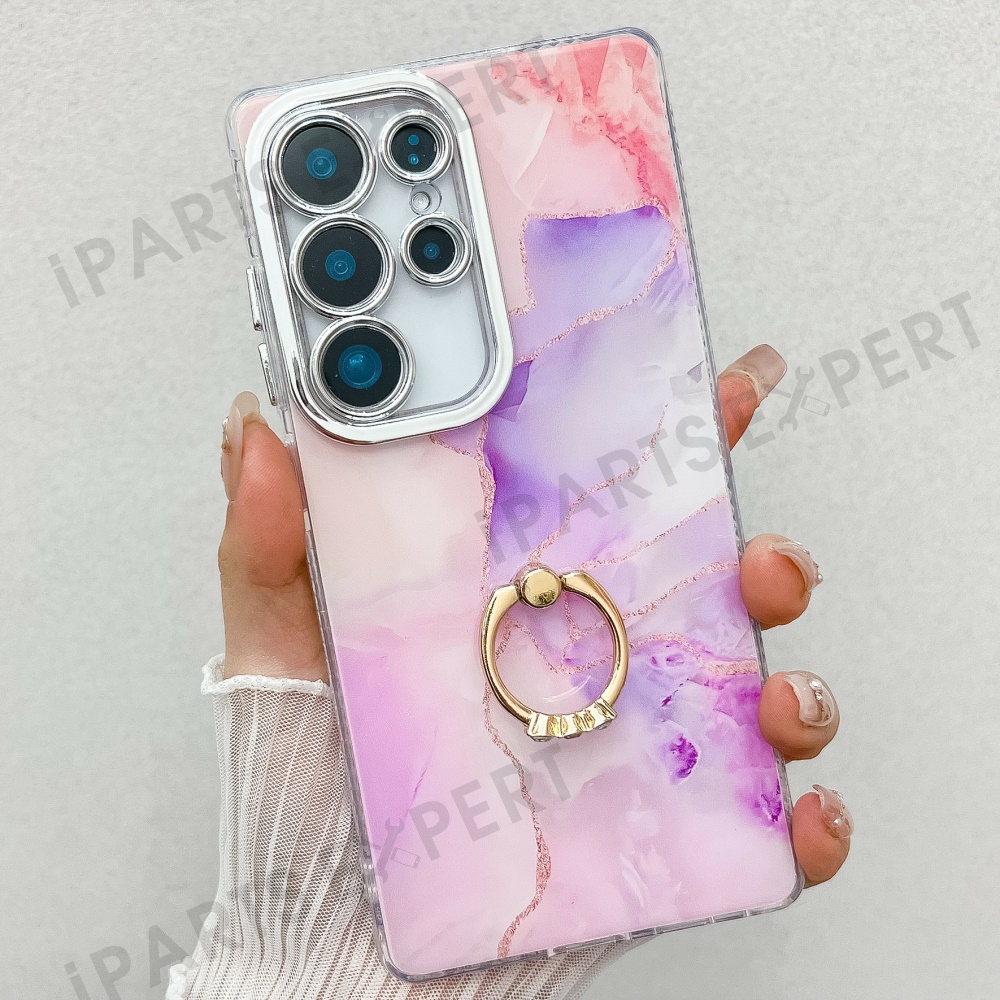 For Samsung Galaxy S25 Ultra Case with Kickstand IMD Marble Pattern Electroplated Phone Cover - S4
