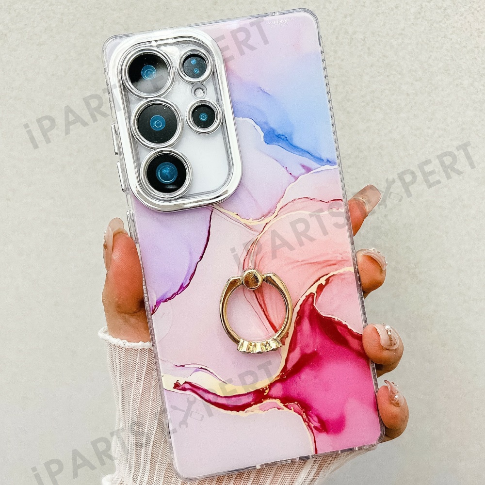 For Samsung Galaxy S25 Ultra Case with Kickstand IMD Marble Pattern Electroplated Phone Cover - S7