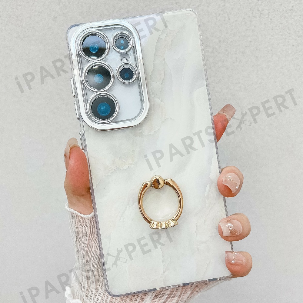 For Samsung Galaxy S25 Ultra Case with Kickstand IMD Marble Pattern Electroplated Phone Cover - S8