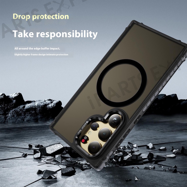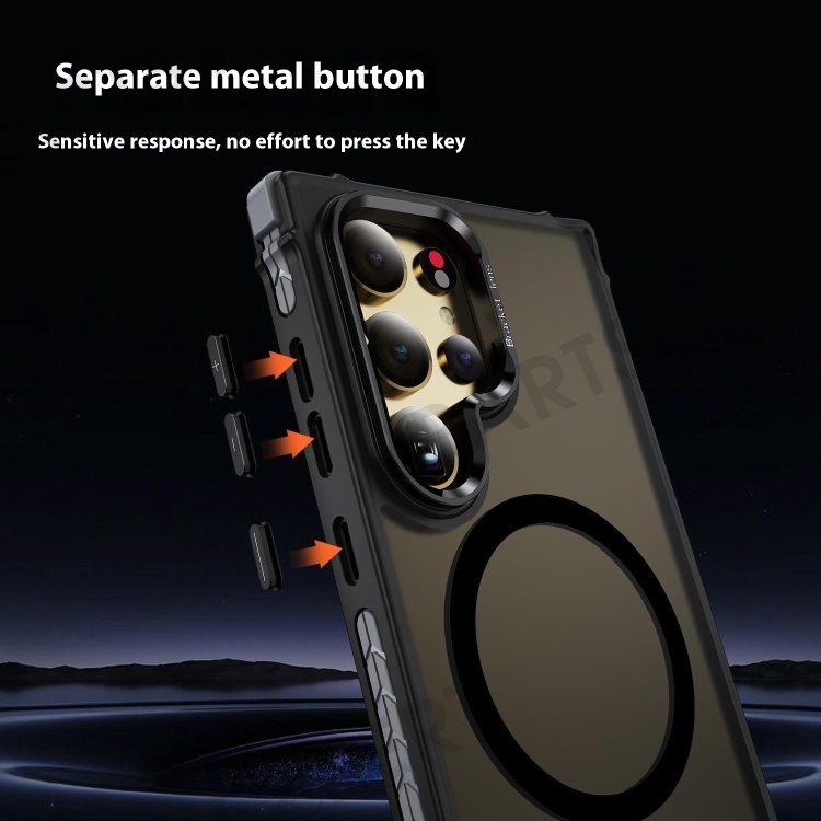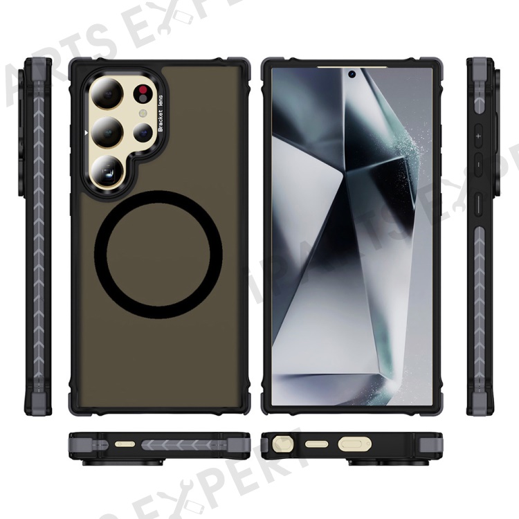 For Samsung Galaxy S25 Ultra Case with Lens Kickstand Matte Back Cover Magnetic Case - Black