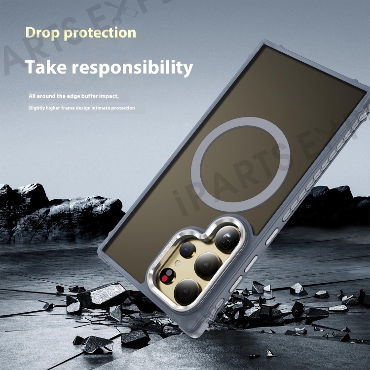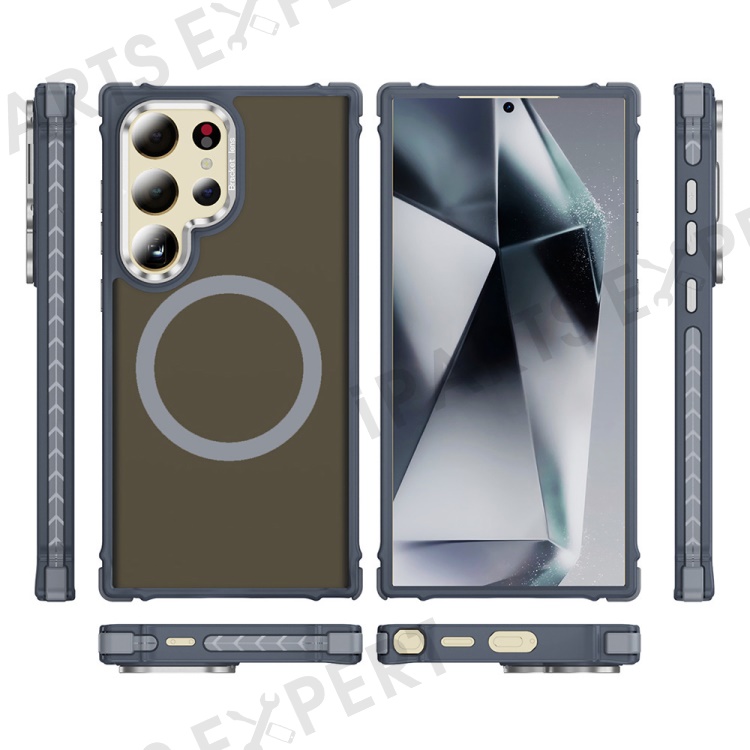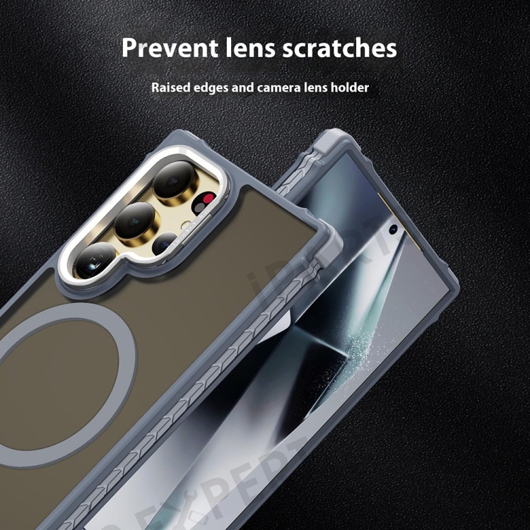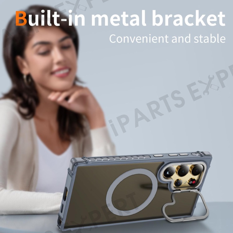 For Samsung Galaxy S25 Ultra Case with Lens Kickstand Matte Back Cover Magnetic Case - Grey