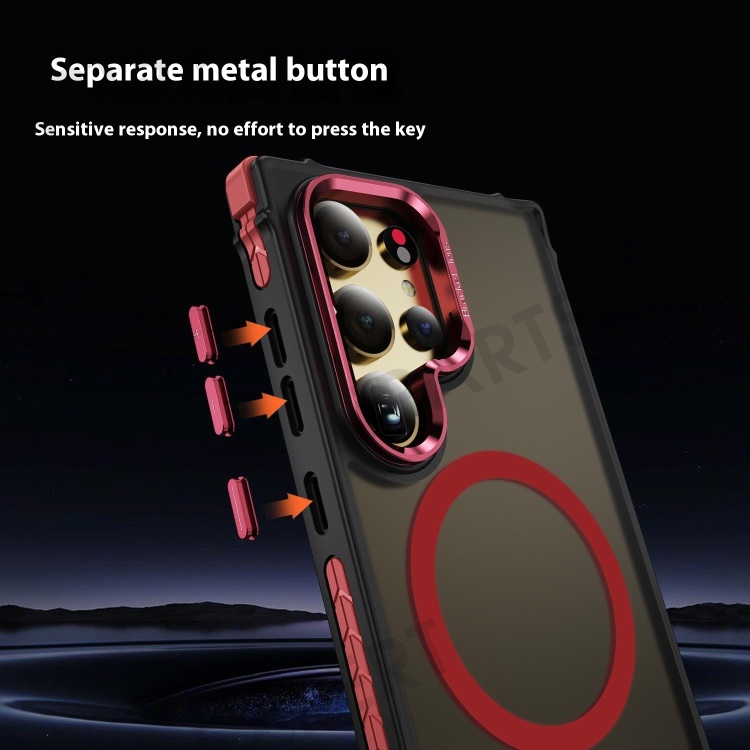 For Samsung Galaxy S25 Ultra Case with Lens Kickstand Matte Back Cover Magnetic Case - Red
