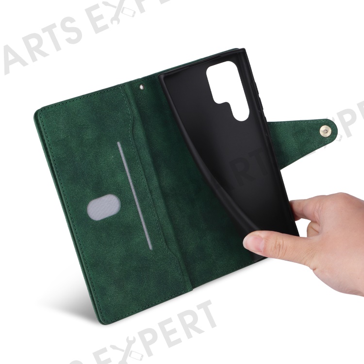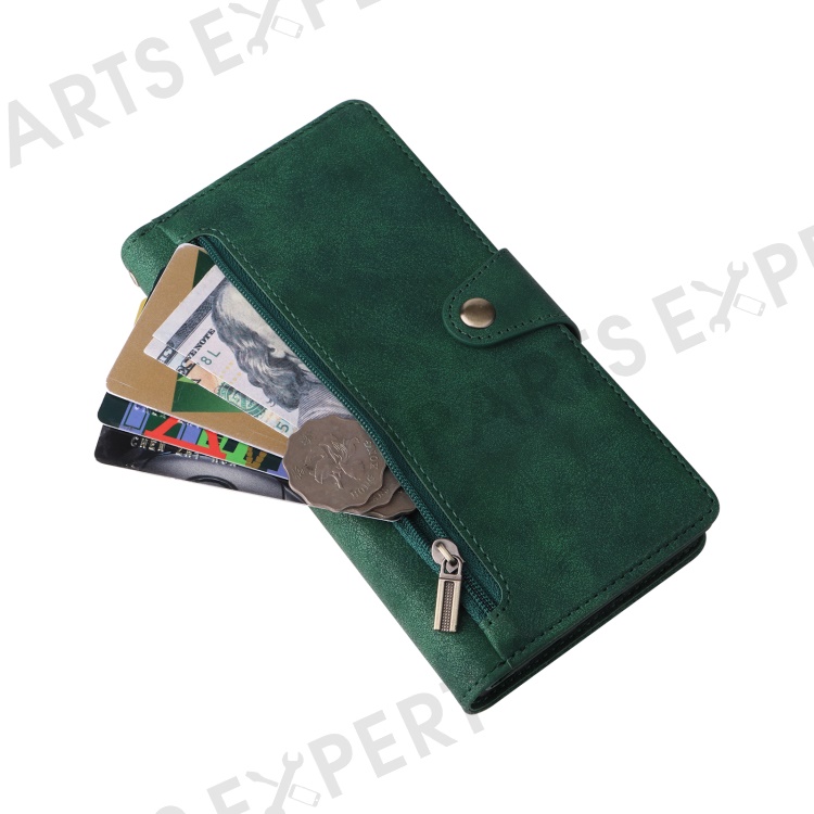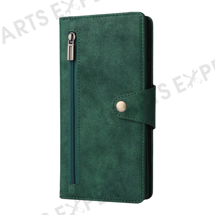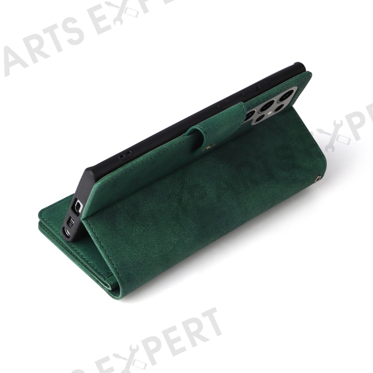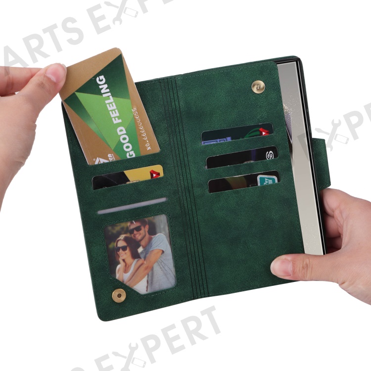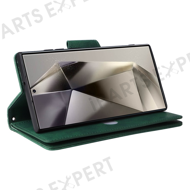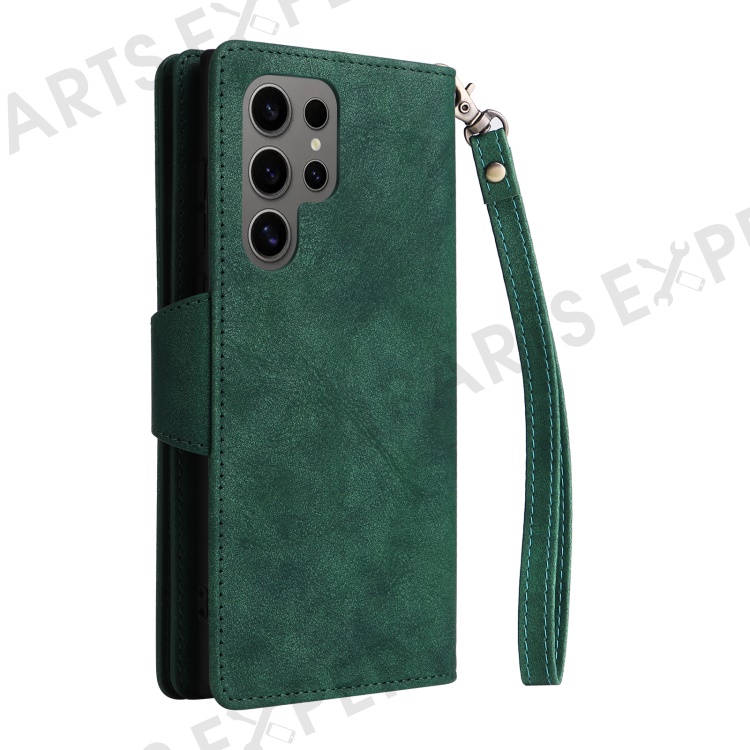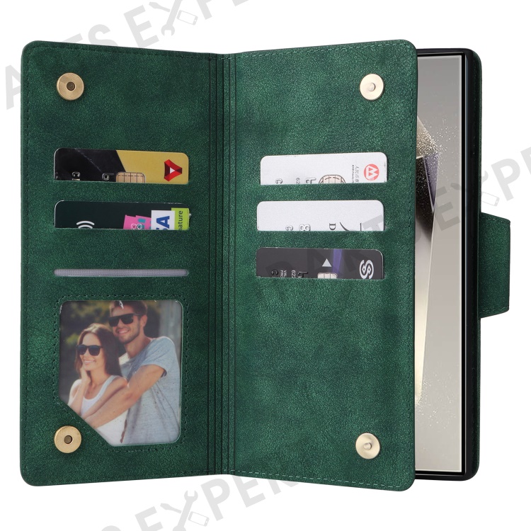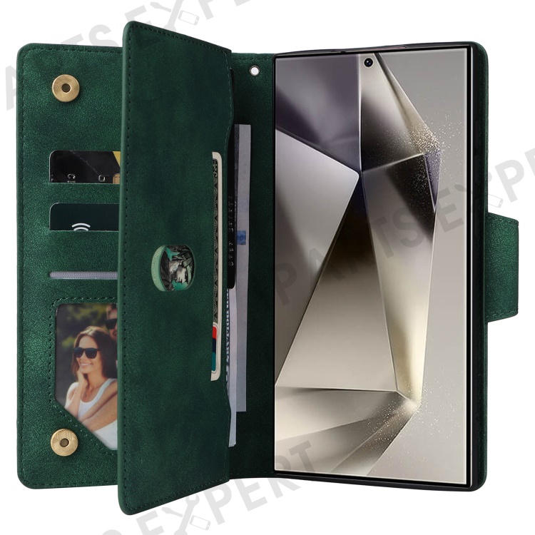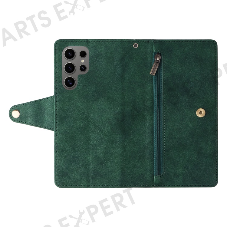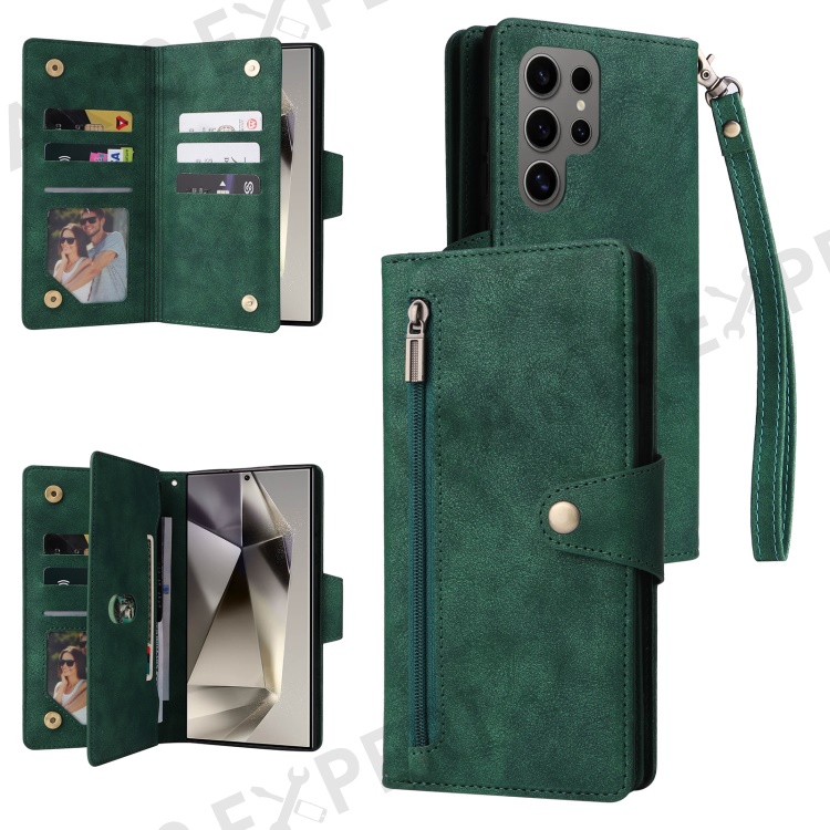 For Samsung Galaxy S25 Ultra Case Zipper Wallet Leather Stand Phone Cover Rivet Decor - Green