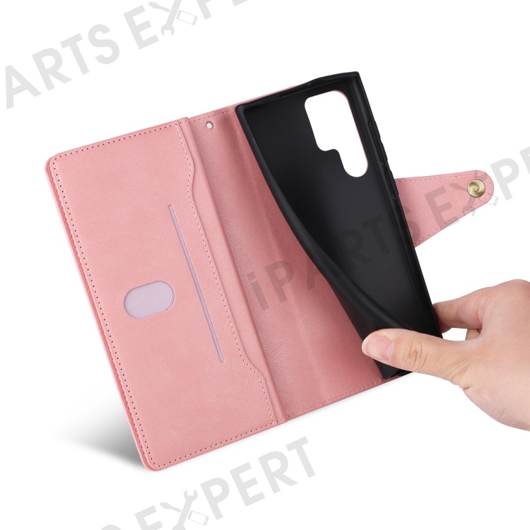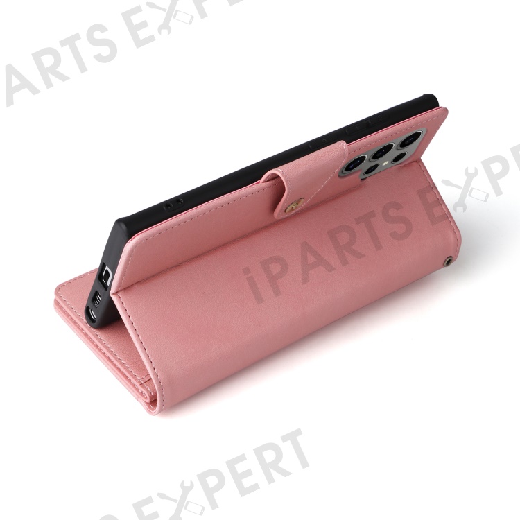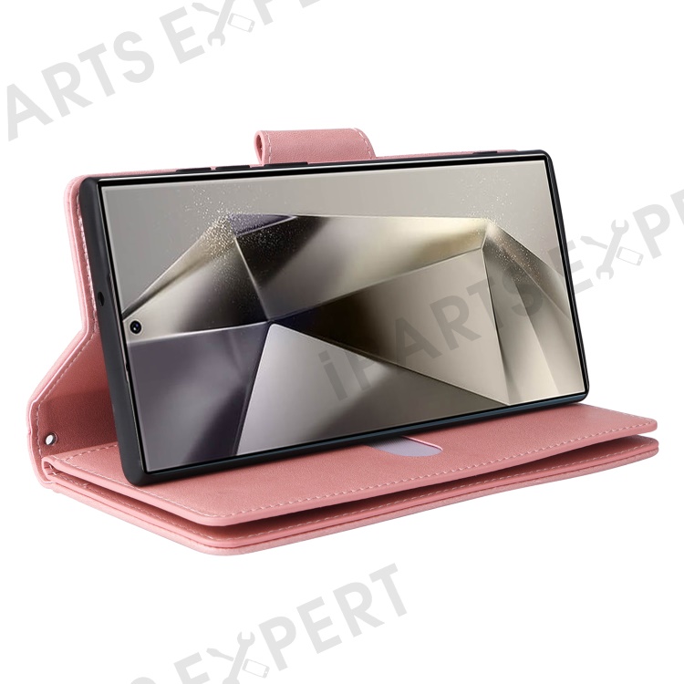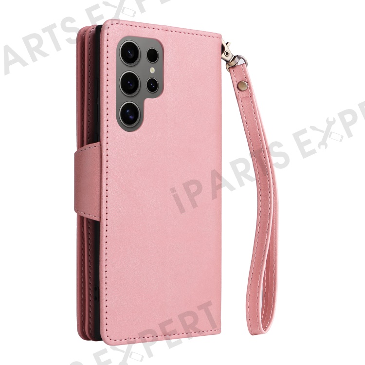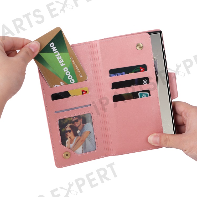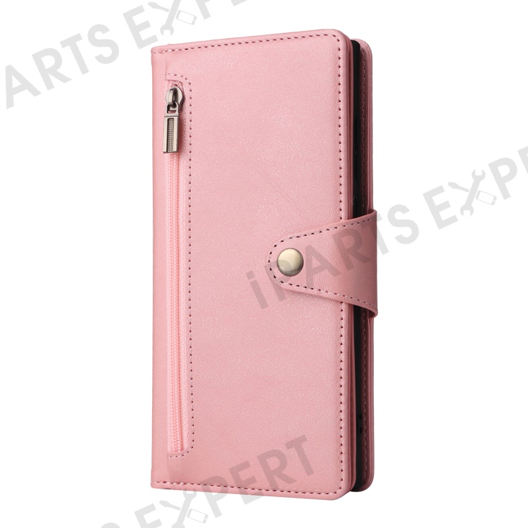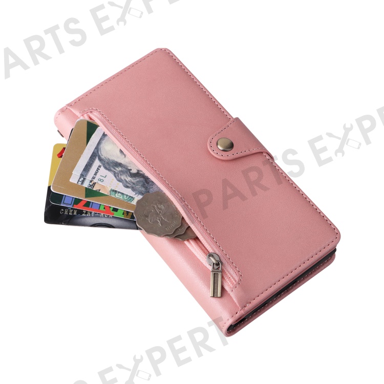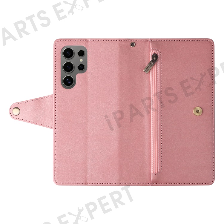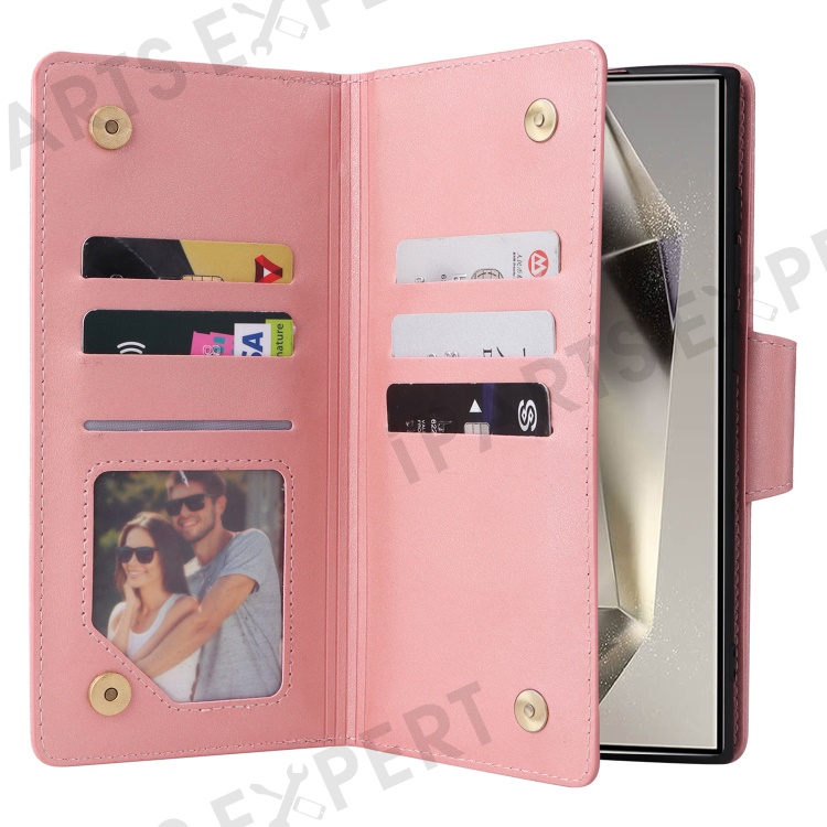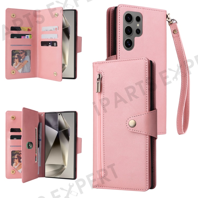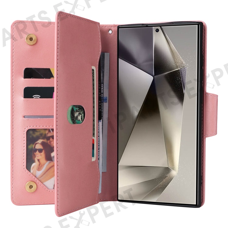 For Samsung Galaxy S25 Ultra Case Zipper Wallet Leather Stand Phone Cover Rivet Decor - Rose Gold