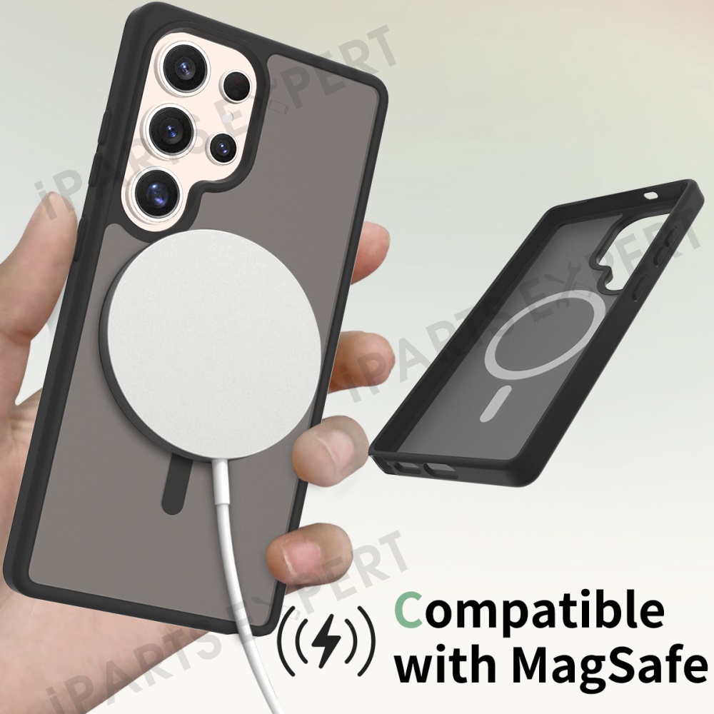 For Samsung Galaxy S25 Ultra Magnetic Case TPU Frame Acrylic Back Phone Cover Skin Touch - Blue