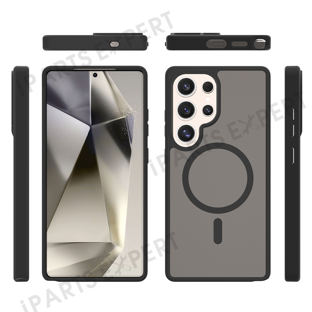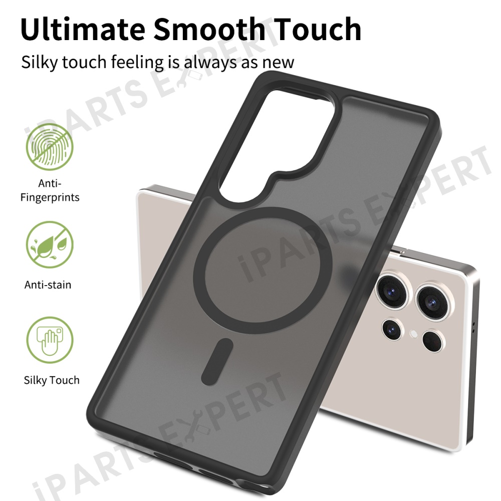 For Samsung Galaxy S25 Ultra Magnetic Case TPU Frame Acrylic Back Phone Cover Skin Touch - Pink