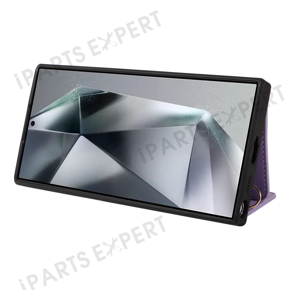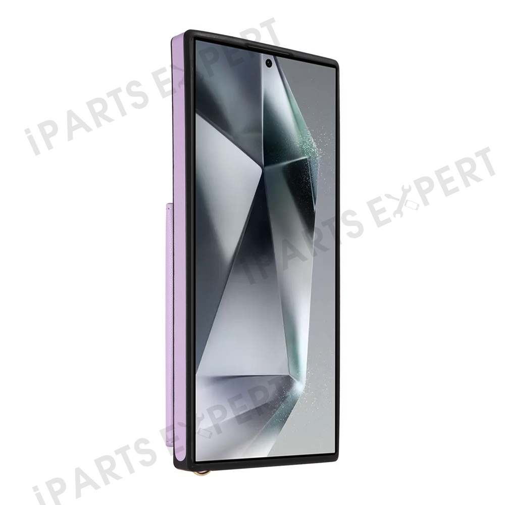 For Samsung Galaxy S25 Ultra Crossbody Phone Case Card Holder Kickstand Leather Coated TPU Mobile Cover - Purple