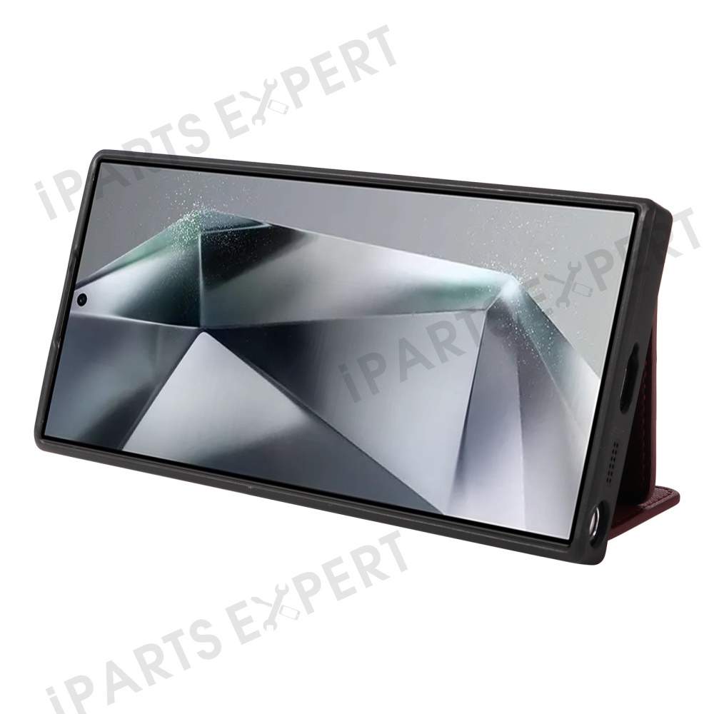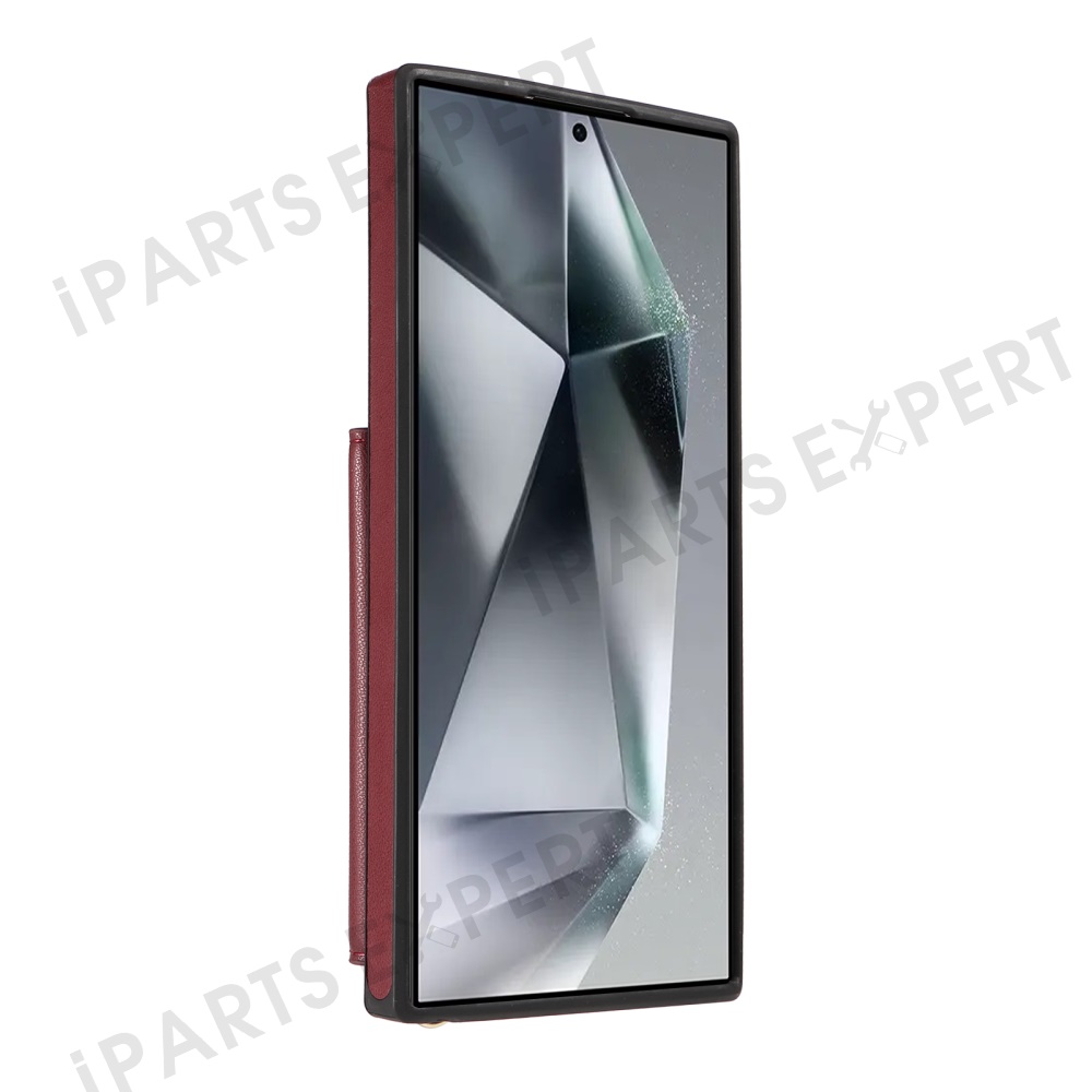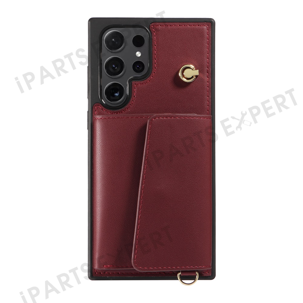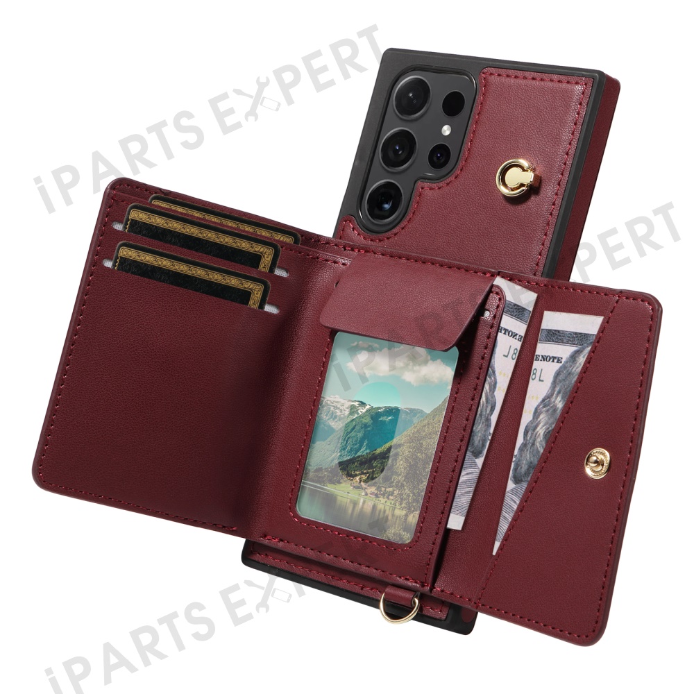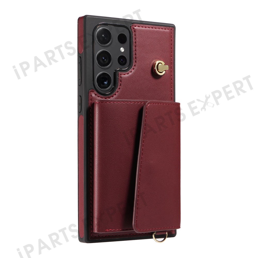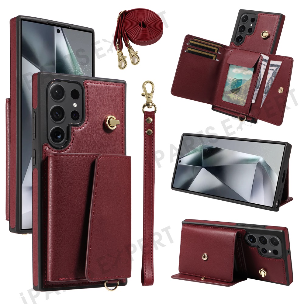 For Samsung Galaxy S25 Ultra Crossbody Phone Case Card Holder Kickstand Leather Coated TPU Mobile Cover - Wine Red