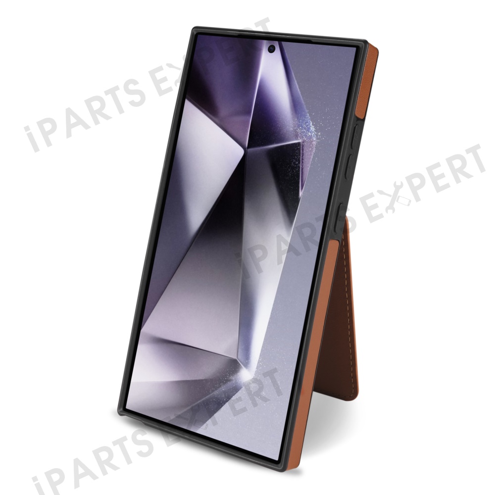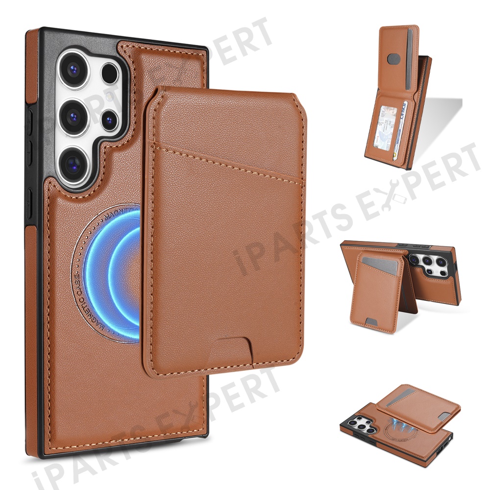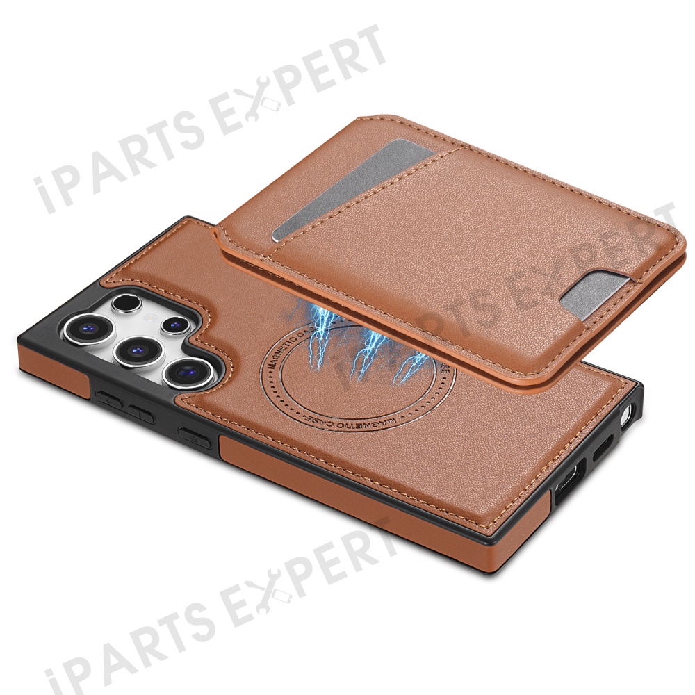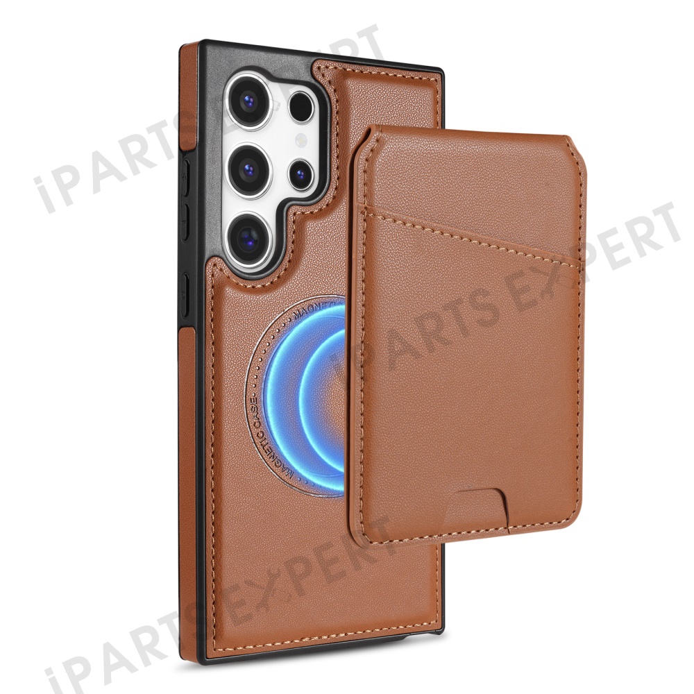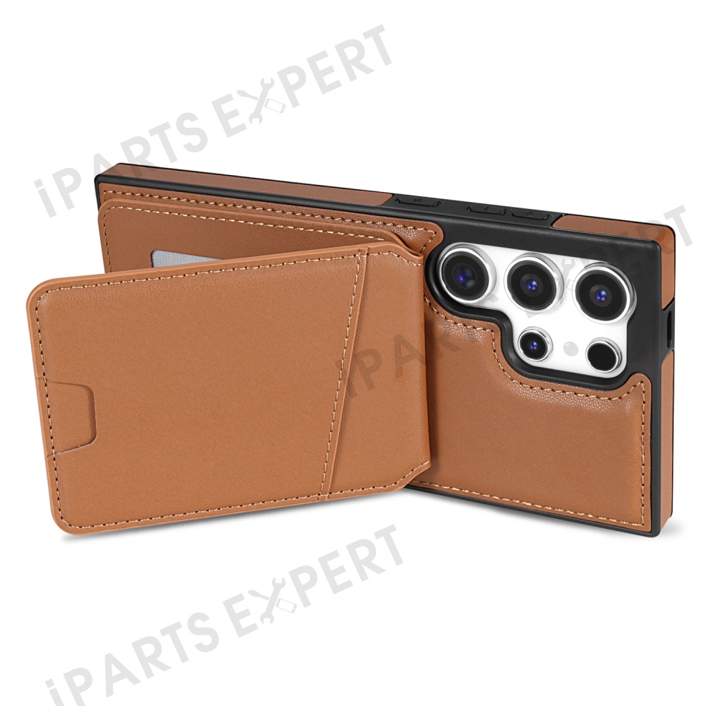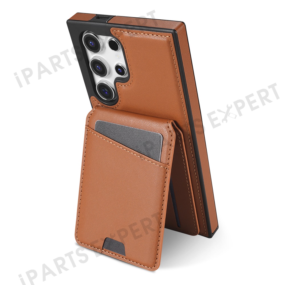 For Samsung Galaxy S25 Ultra Magnetic Case Detachable Card Holder Kickstand Leather Phone Back Cover - Brown