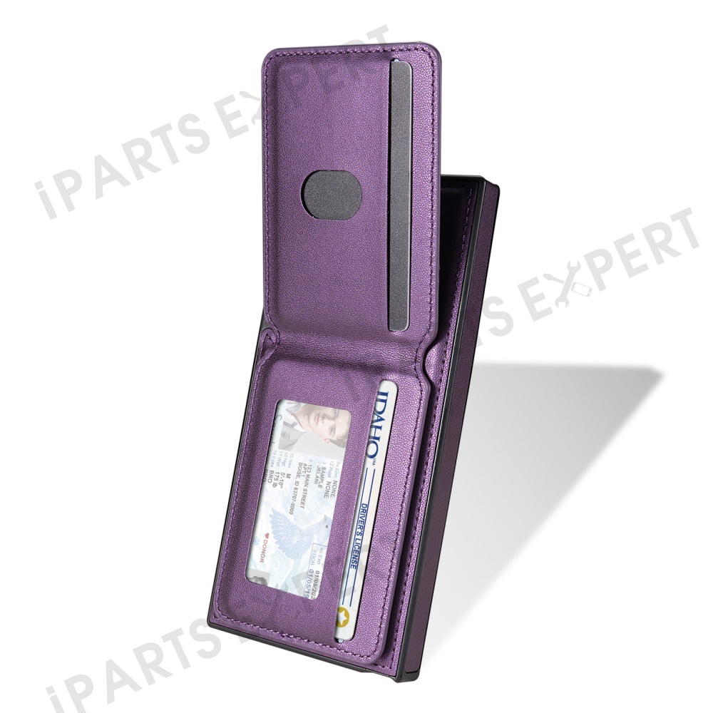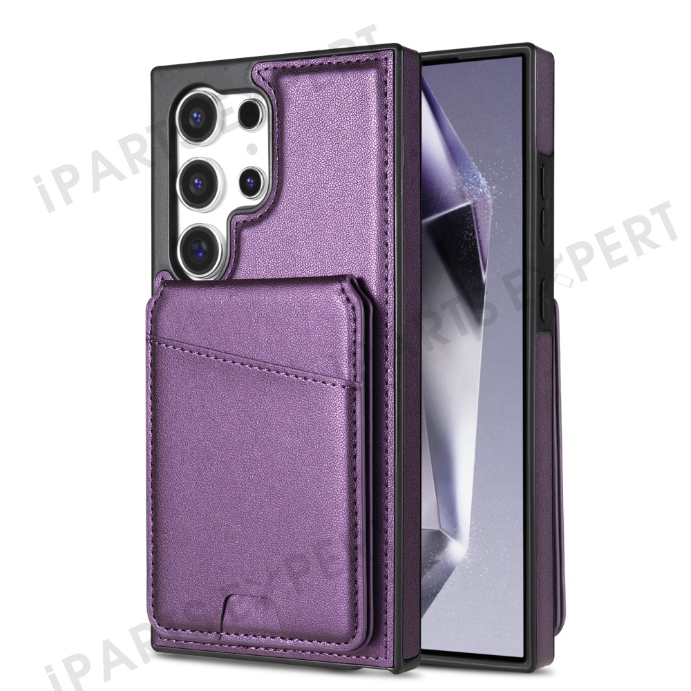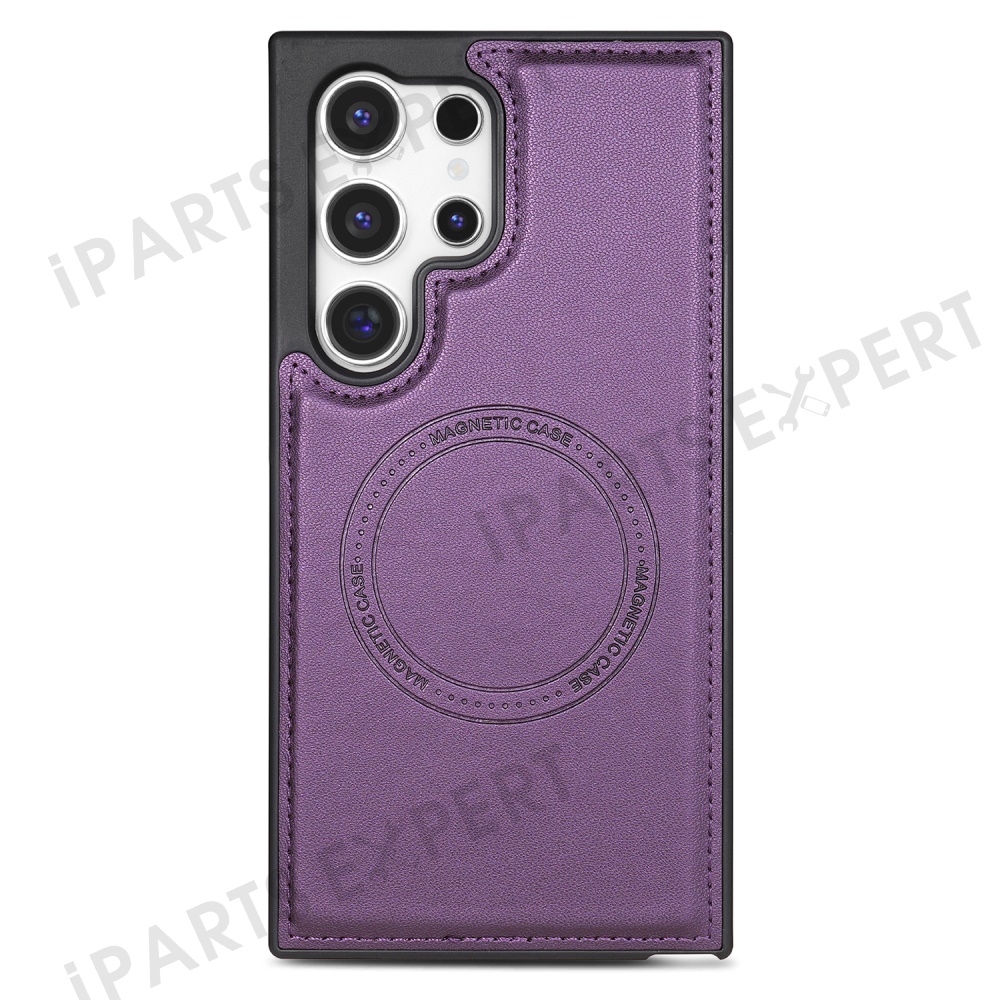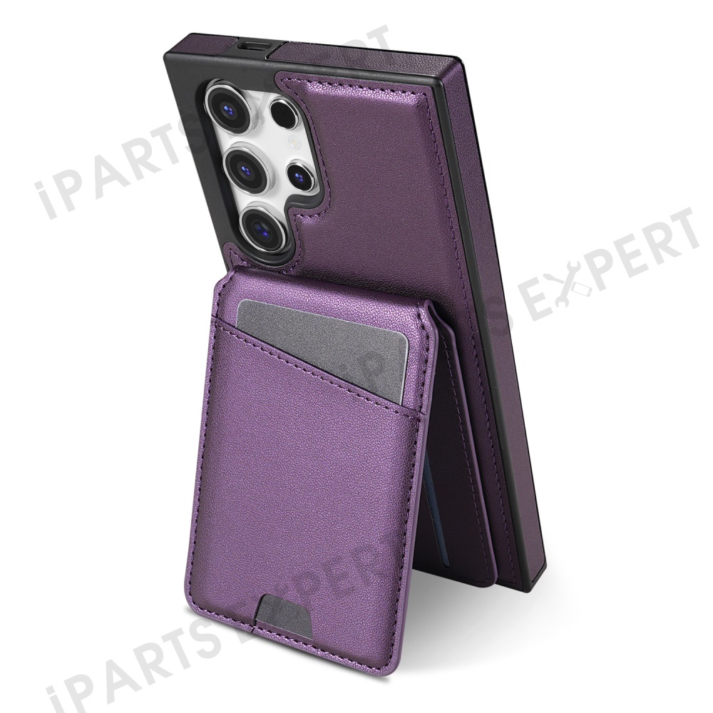For Samsung Galaxy S25 Ultra Magnetic Case Detachable Card Holder Kickstand Leather Phone Back Cover - Purple