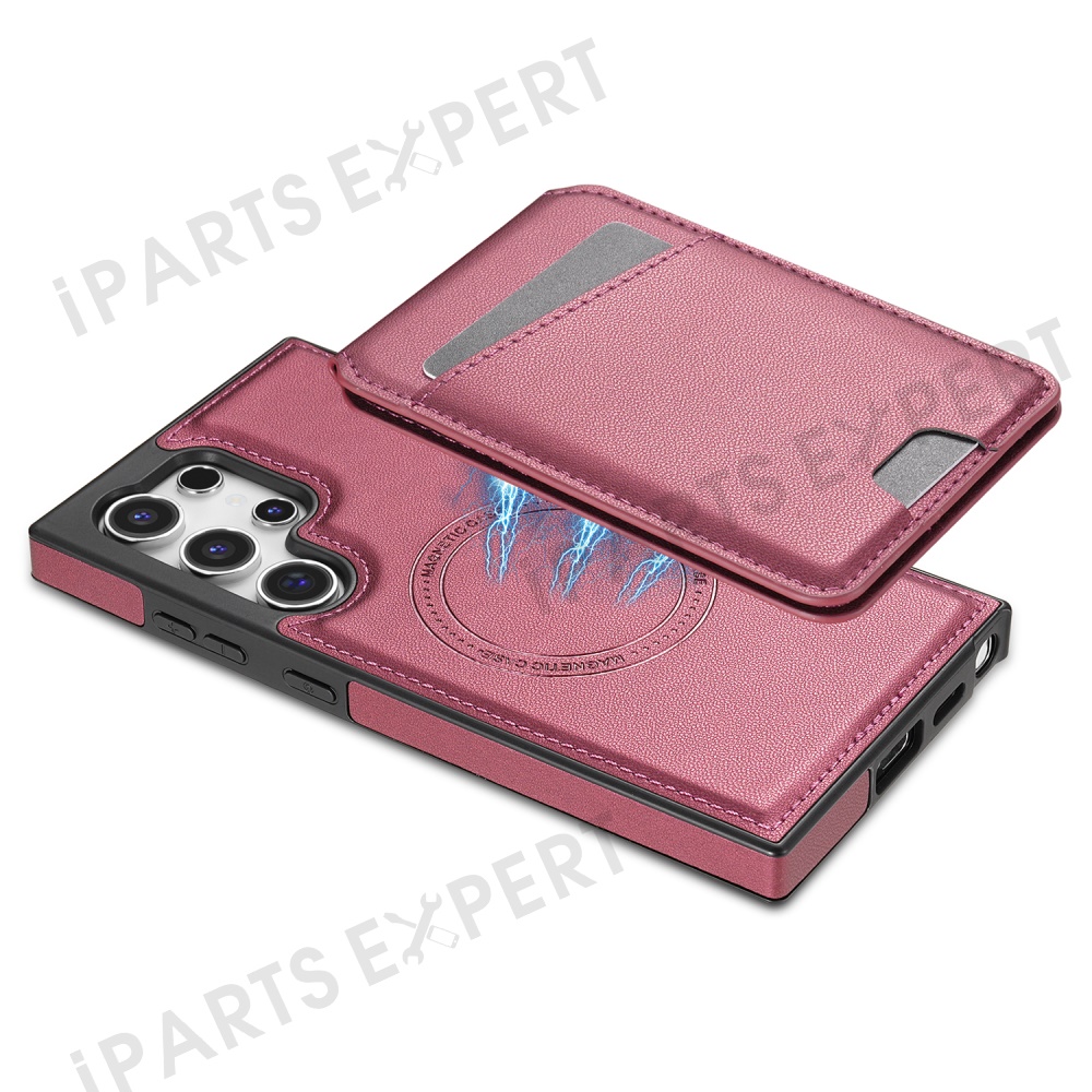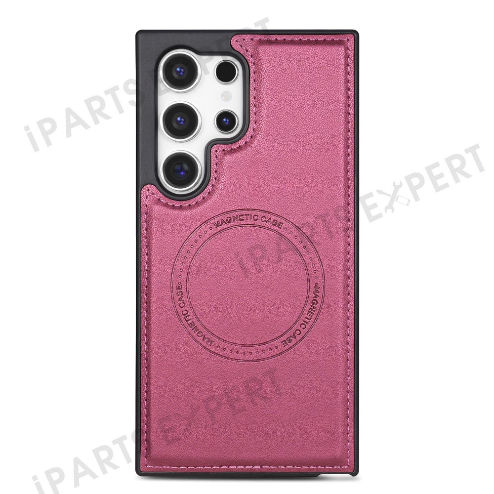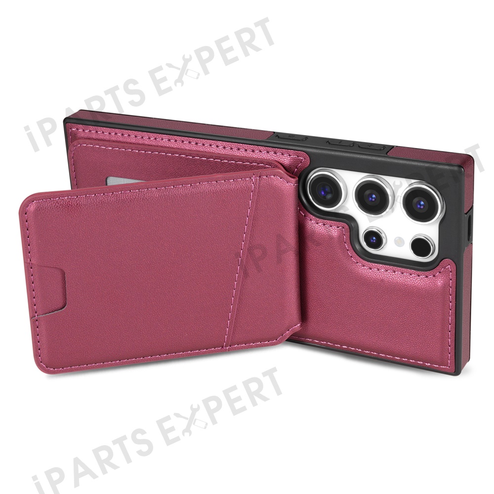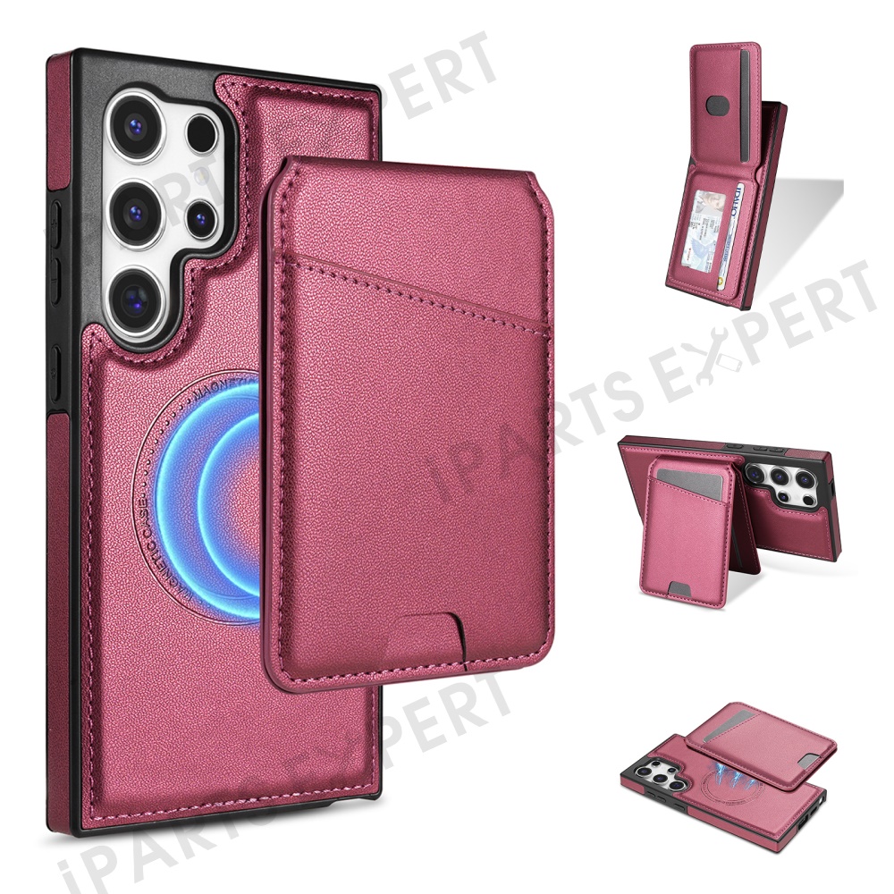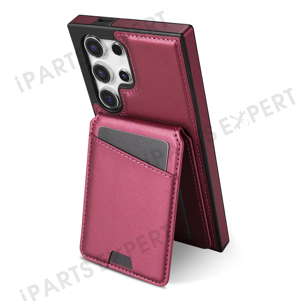 For Samsung Galaxy S25 Ultra Magnetic Case Detachable Card Holder Kickstand Leather Phone Back Cover - Red