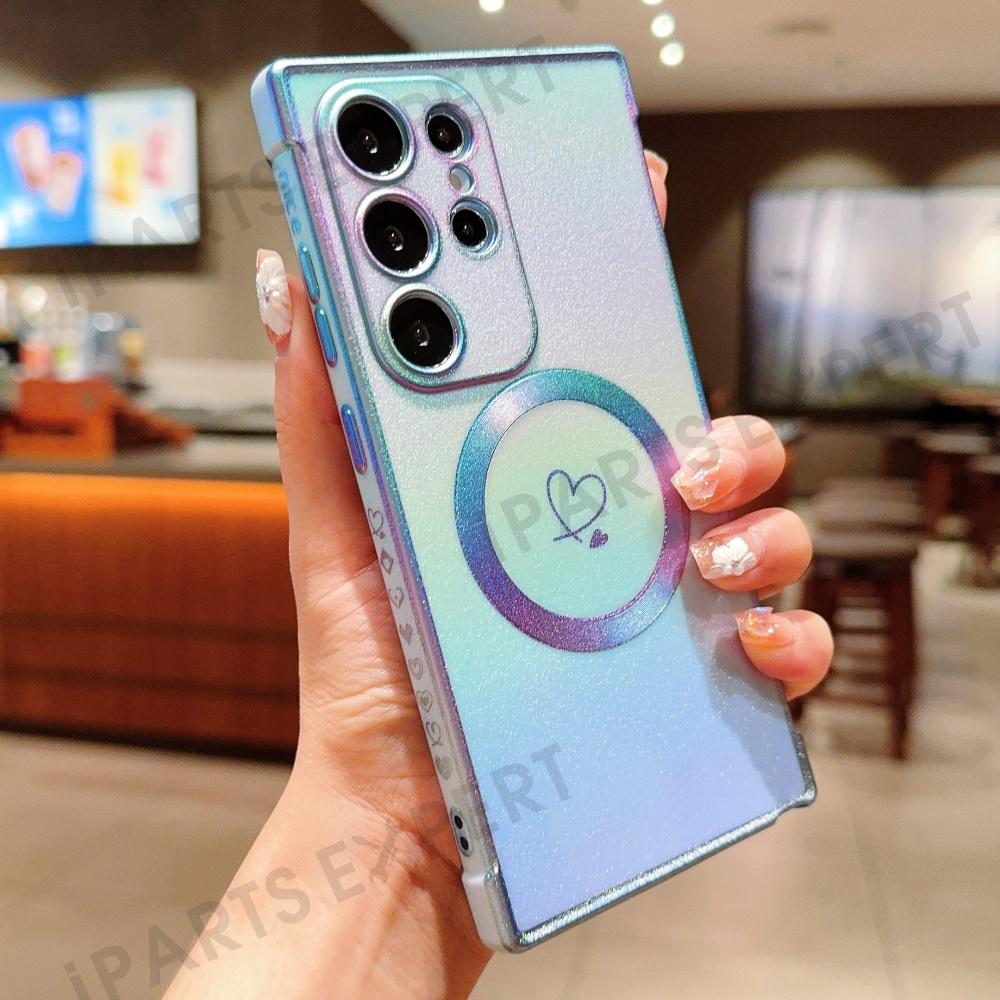For Samsung Galaxy S25 Ultra Magnetic Case TPU Dazzling Color Electroplated Phone Back Cover - Blue