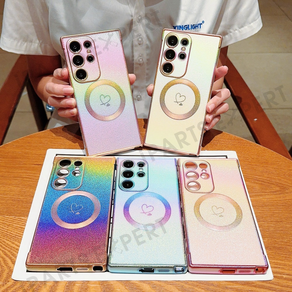 For Samsung Galaxy S25 Ultra Magnetic Case TPU Dazzling Color Electroplated Phone Back Cover - Purple
